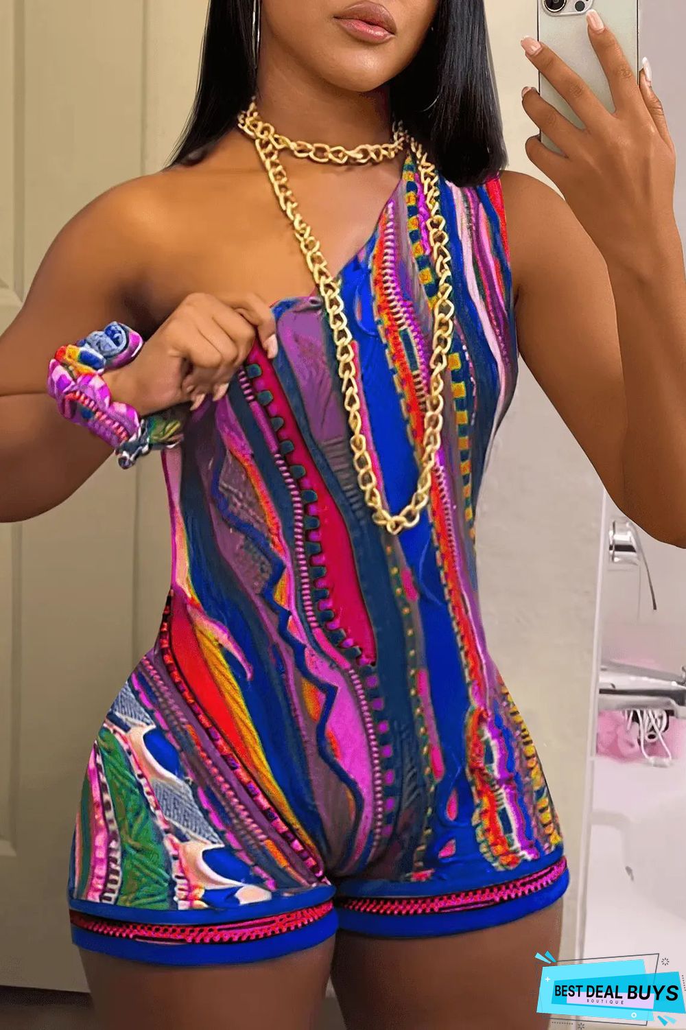 This Abstract Printing Slash Shoulder Jumpsuit Design Made Of High Quality Polyster And Spandex Material. It Is Stretchy, Durable And Comfortable. It Is The Favorite Item For Summer. Wholesale Sexy Long Sleeve Playsuit Has Long Been a Party Choice. Global Lover Provide a Rich Selection Of Sequin, Beaded, See Through Mesh, Leopard, Floral Lace, Leather, Velvet, Denim, Tight And Fitted Wholesale Jumpsuit On Trend. When You Need More Buy Women’s Playsuits At Whoelsale Price For Resale, Global Lover Wholesale Women Apparel Online Store Is Your Best Choice.