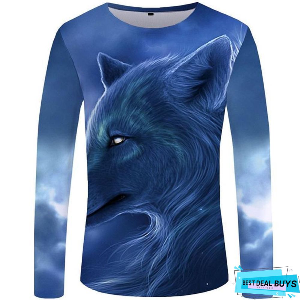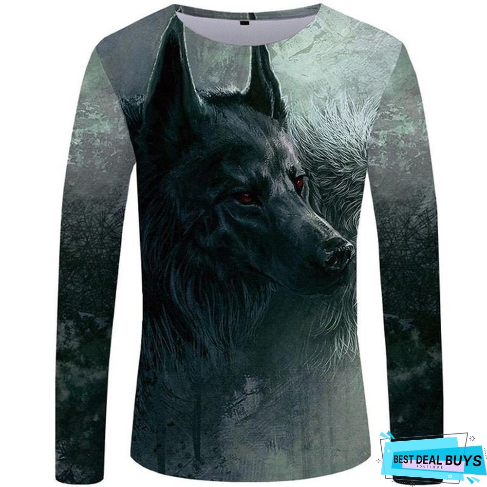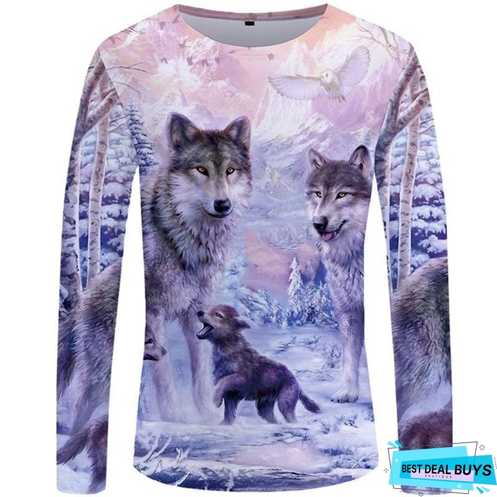 Wolf T-Shirt Men Long Sleeve Shirt Love Streetwear Snow Graphic Mountain Clothes Jungle 3D T-Shirt