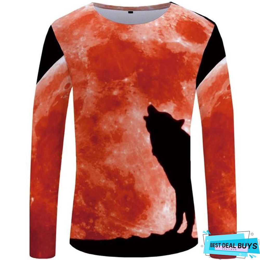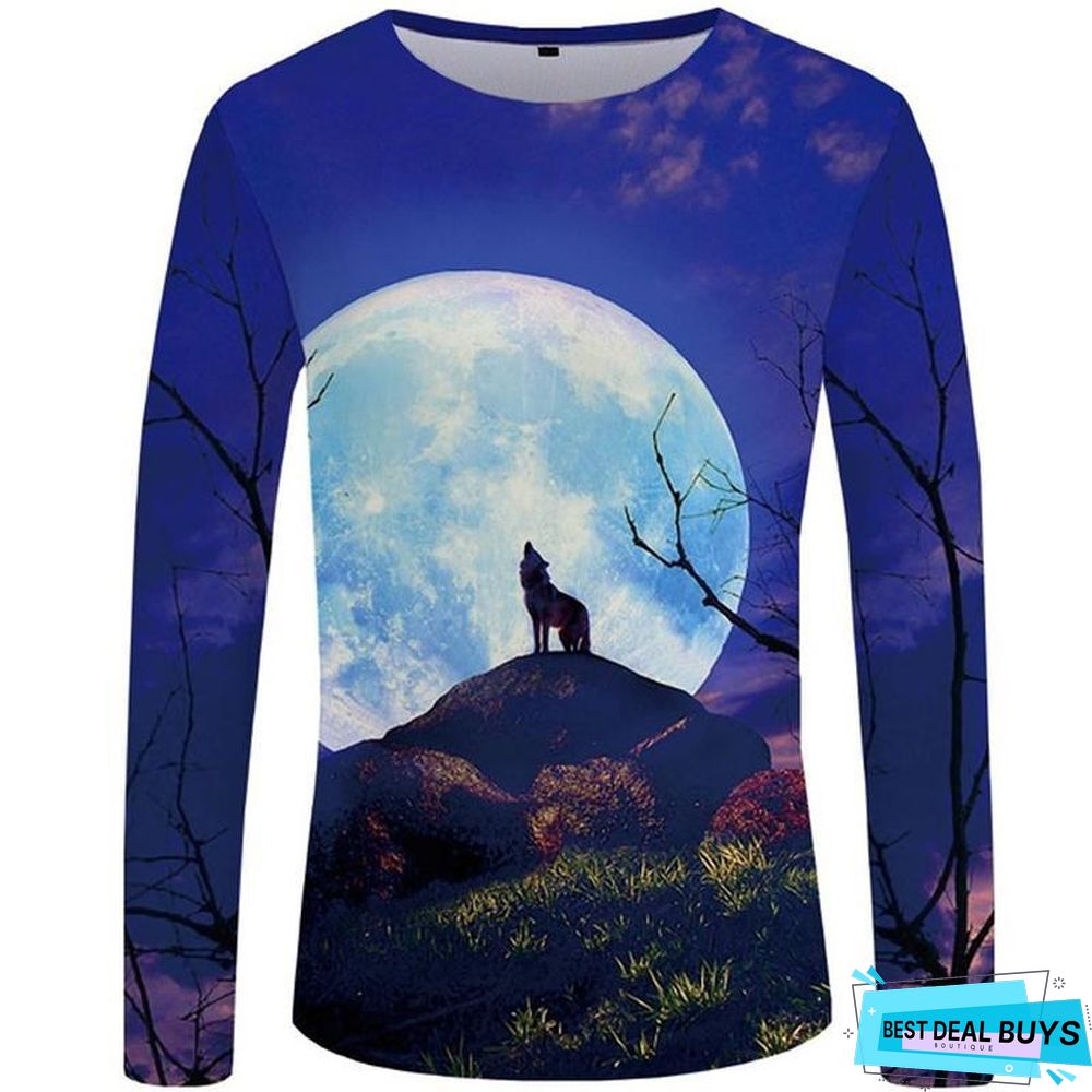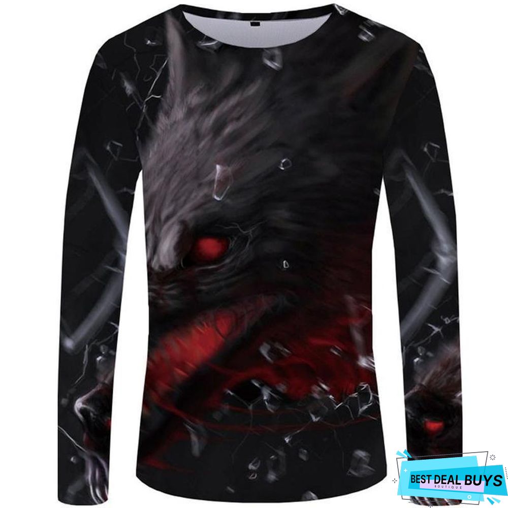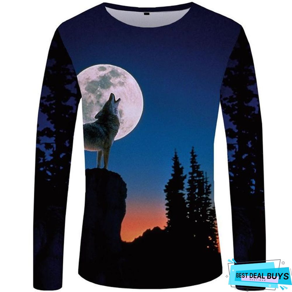 Wolf T-Shirt Men Long Sleeve Shirt Love Streetwear Snow Graphic Mountain Clothes Jungle 3D T-Shirt