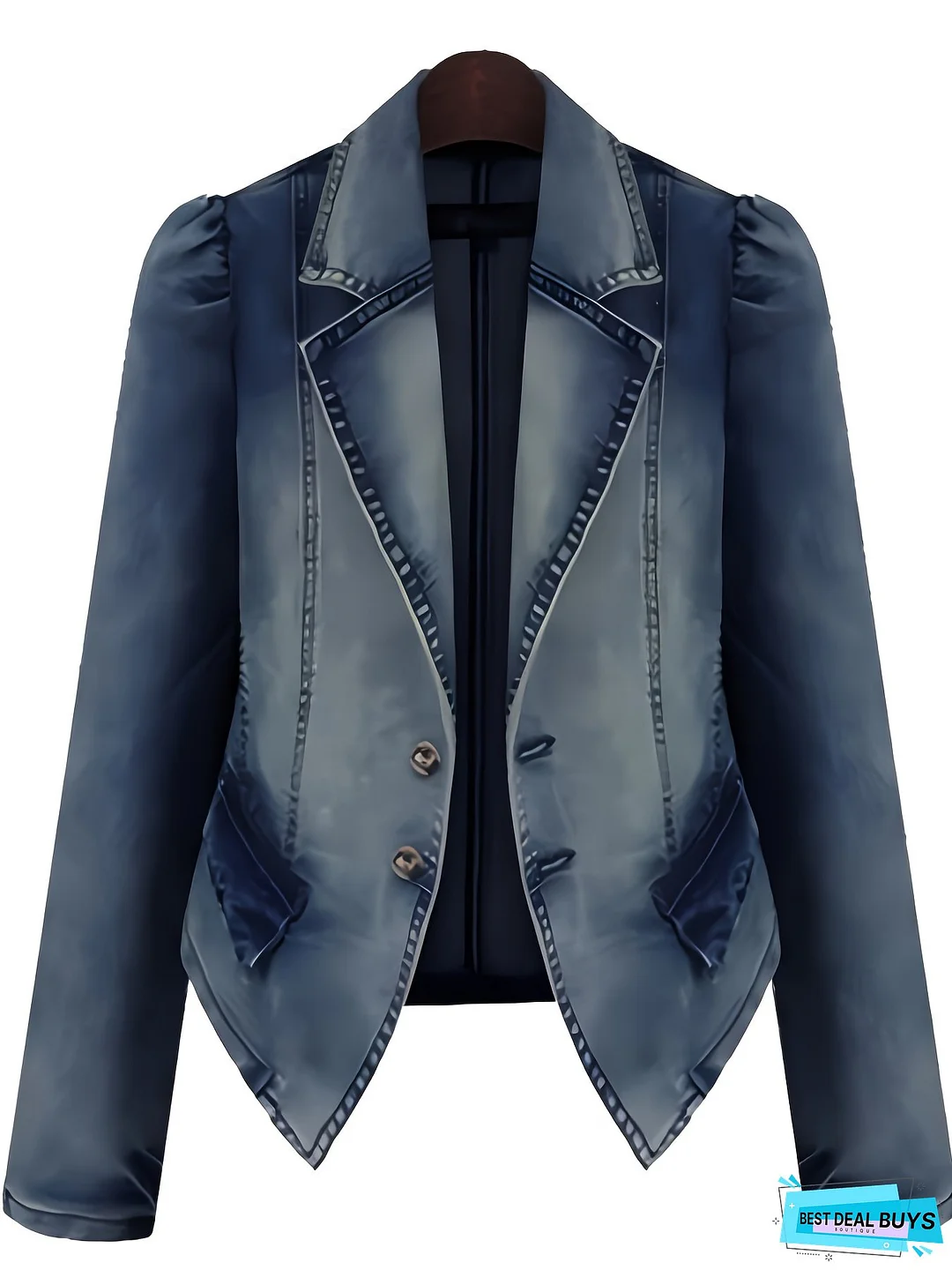 Women'S Slim Fit Retro Denim Jacket - Long Sleeve V-Neck Asymmetrical Zipper Closure, High-Stretch All-Season Versatile Coat, Classic Blue Washed Casual to Semi-Formal Outerwear for Everyday & Special Occasions, Denim Jacket for Women Plus Size, Plus Size Denim Jackets for Women, Denim Jacket Women Plus Size, Denim Jacket Women, Denim Jacket for Women