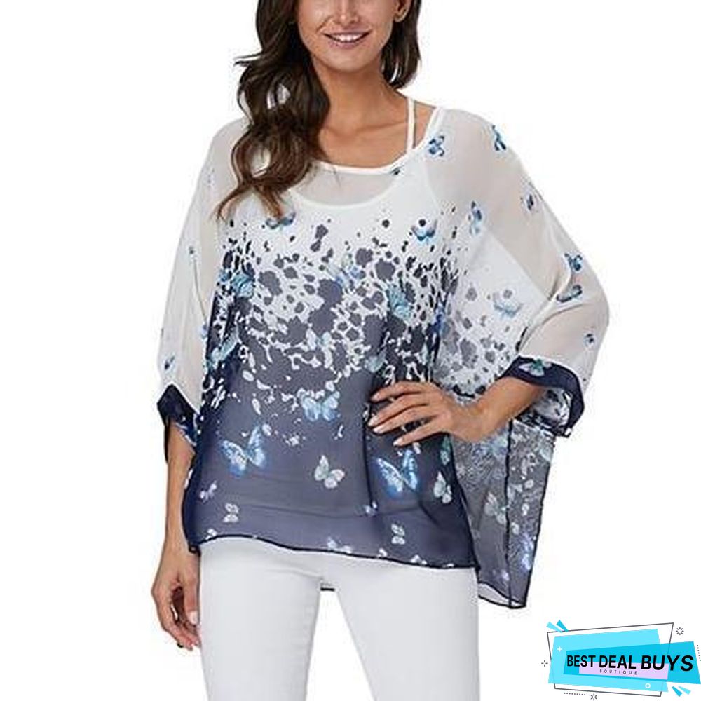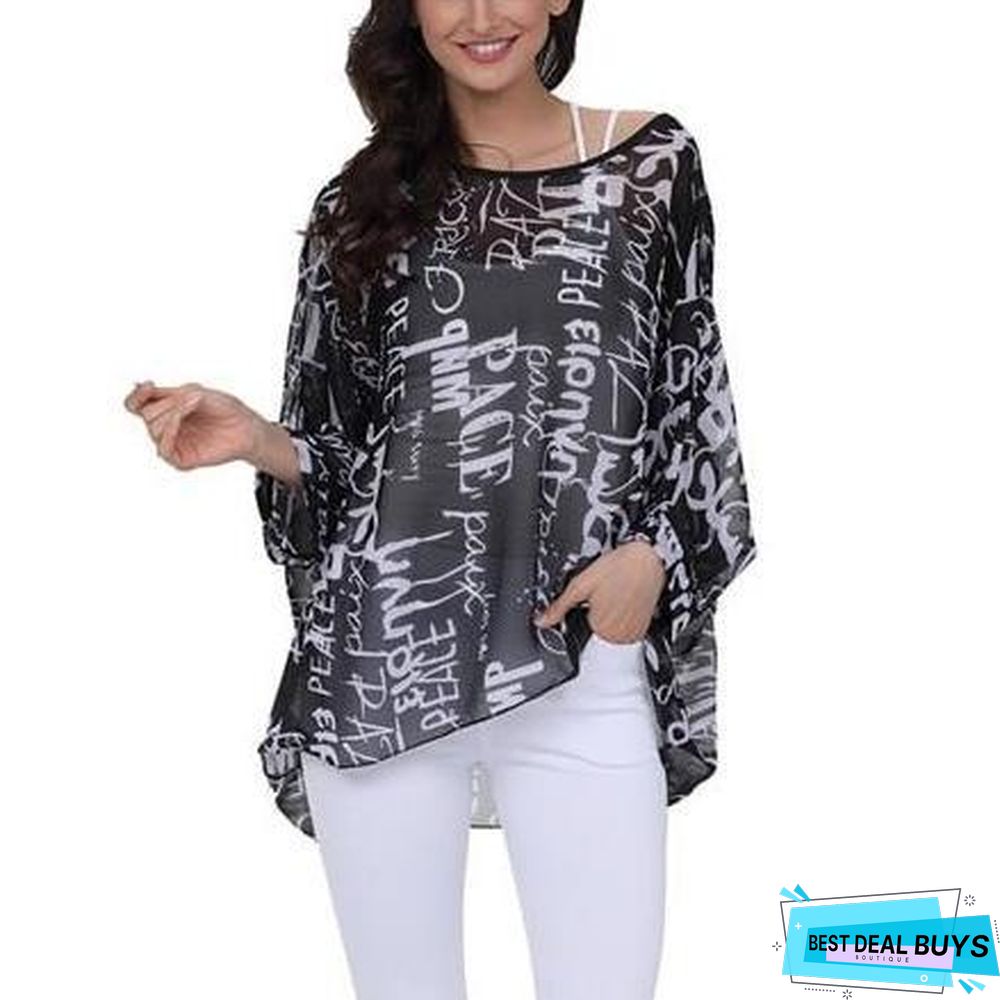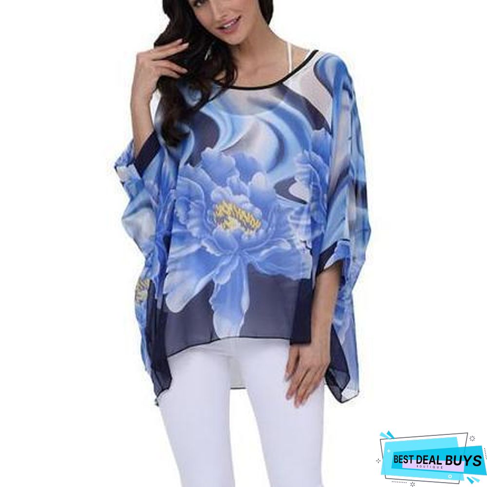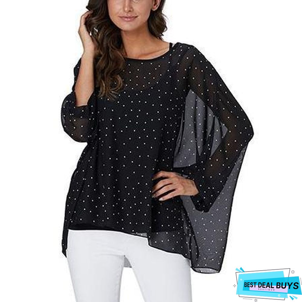 Plus Size Women Batwing Sleeve Casual Chiffon Tops Blouses
