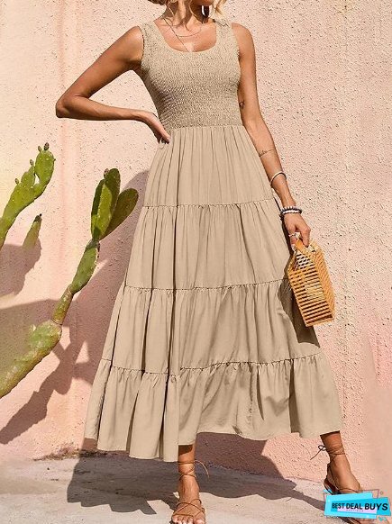 Chic Details: With a classic scoop neckline, sleeveless design, and a flowy skirt, the dress exudes effortless charm and femininity.