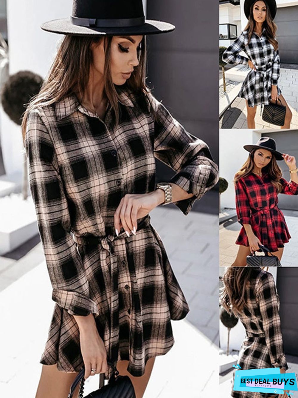 Autumn and Winter Fashion Sexy Printed Shirt Plaid Dress Skirt