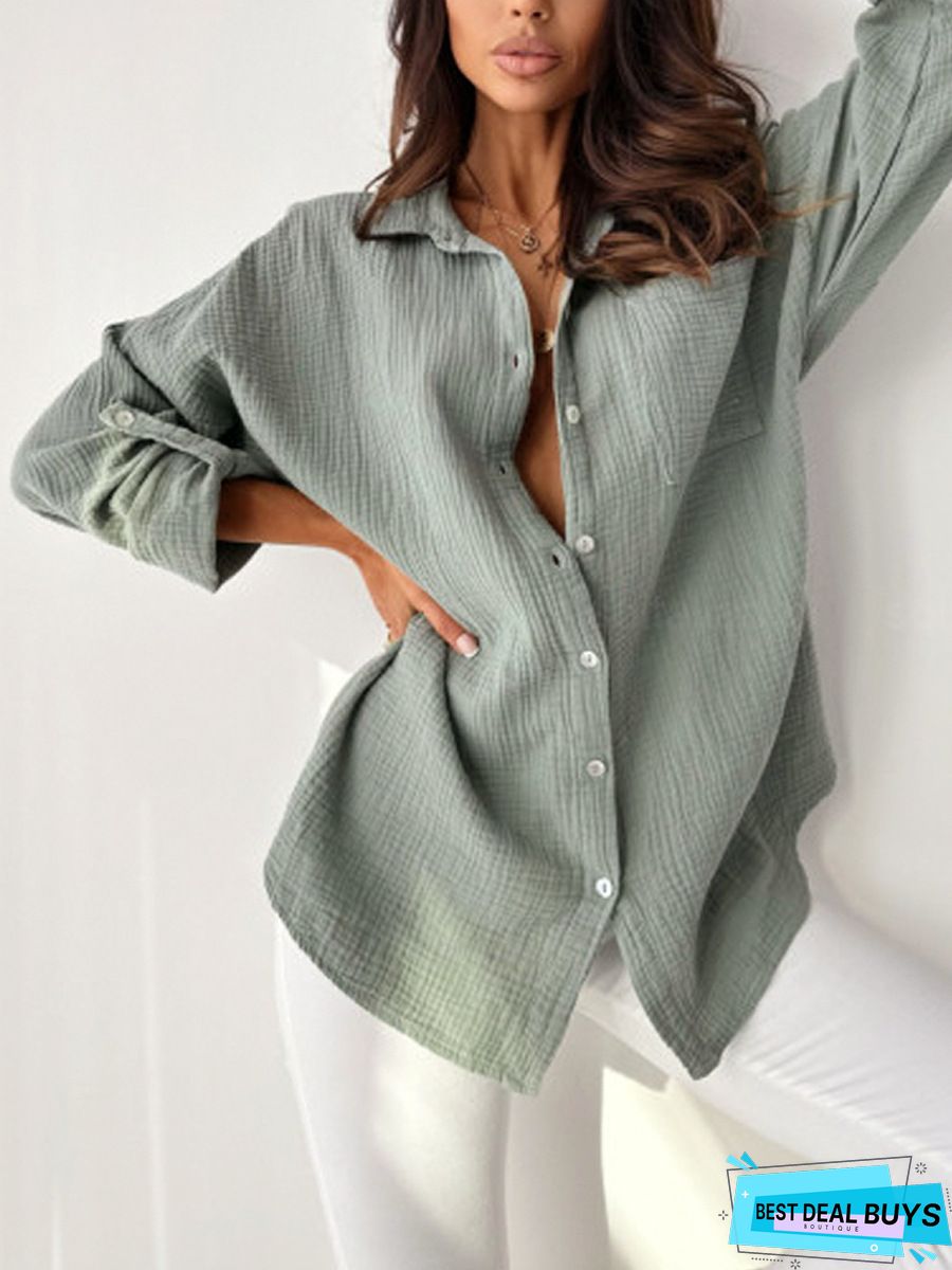 This Women's Spring Loose Plus Size Patch Pockets Turndown Collar Long Sleeve Shirt Is Soft And Comfortable. From Street Style Cropped To Party Sexy Satin Tunics Blouse, From Office Elegant Silk To Holiday Loose Cut Chiffon Blouse, From Classic Stripes To Plaid Shirt, From Basic White Color To Printed Floral Blouse. Wholesale Blouses And Tops For Ladies Is a Must-Have Item On Your Everyday Life. Global Lover Shirts And Blouses Online Are Available In Wide Range Designs. When You Need More Wholesale Women Clothing, You Can Always Find Something Special That You Really Can Not Get From Other Places.