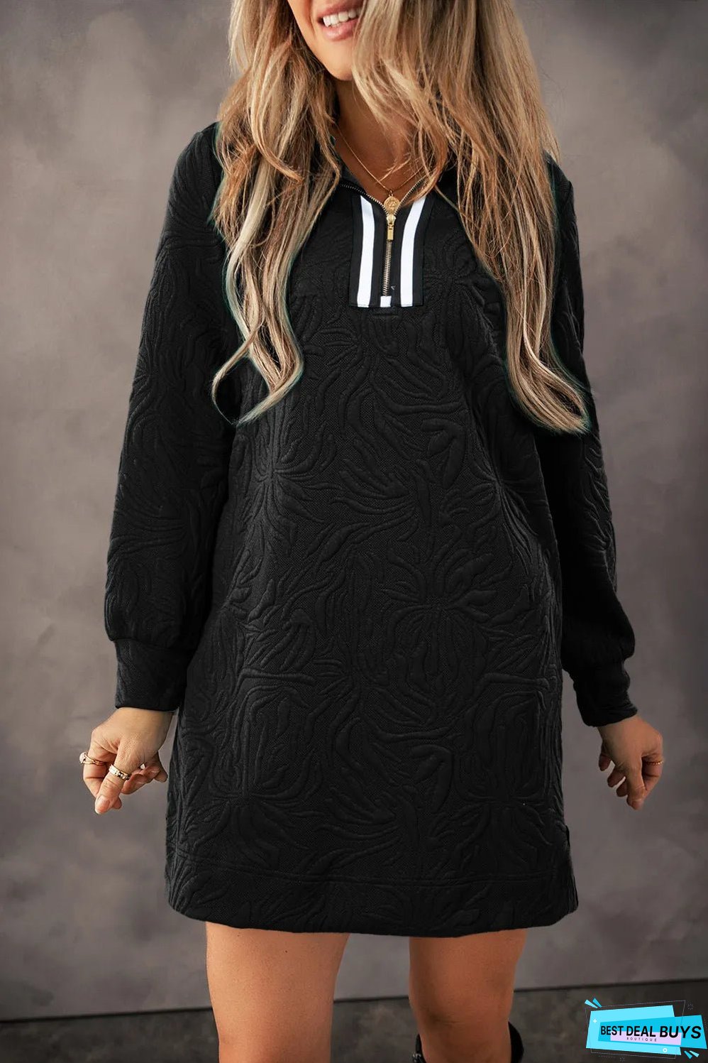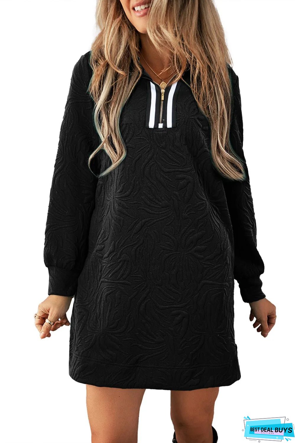 - Jacquard texture provides a unique and elegant feel to this mini dress.