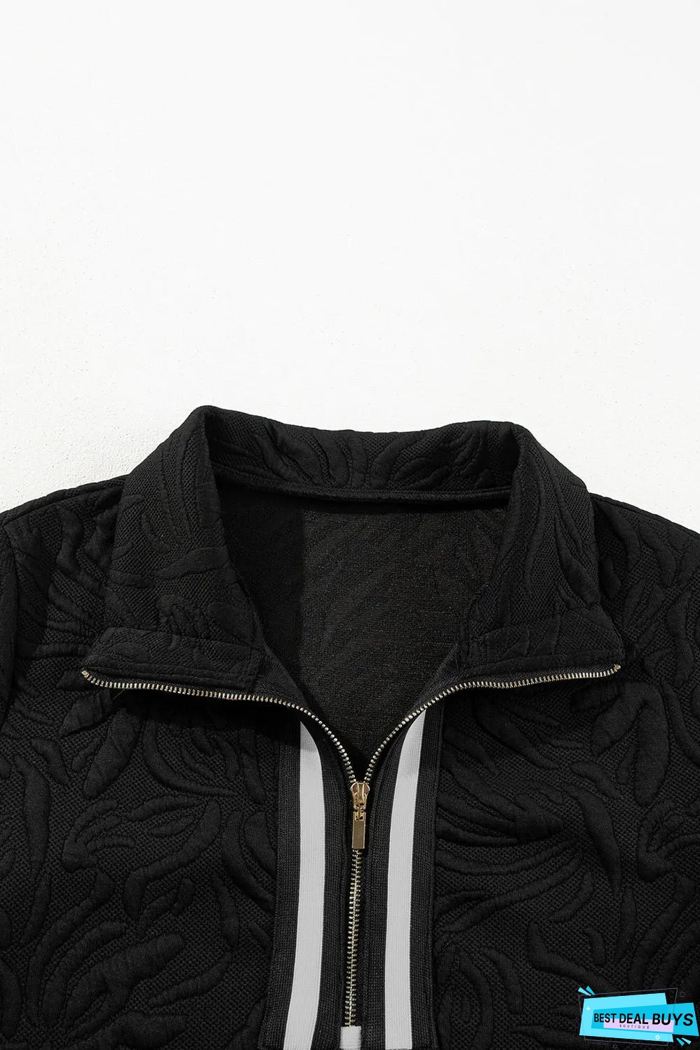 - The quarter zipper detail adds a modern touch.