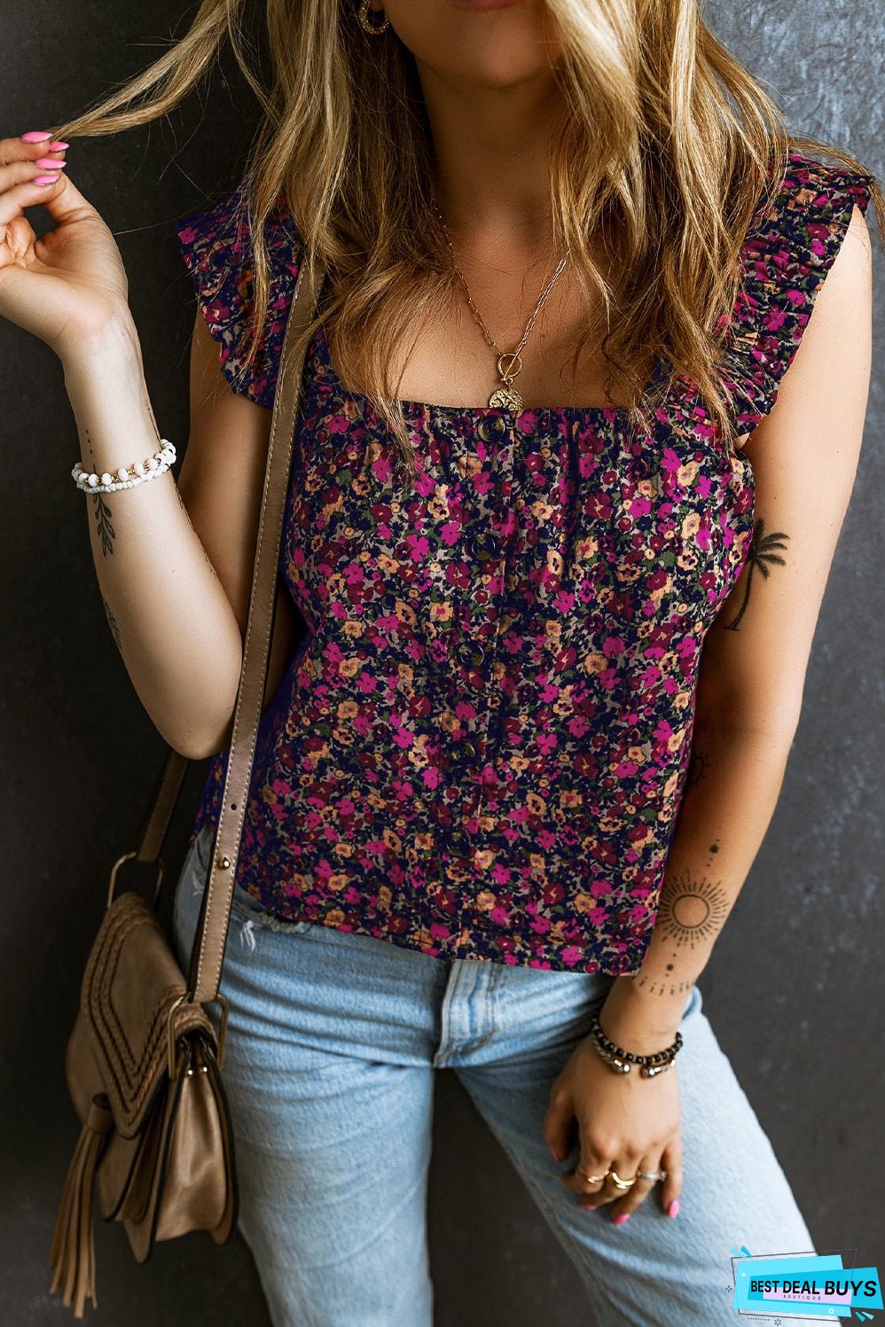 Experience a touch of elegance and femininity with this Boho Frilled Straps Floral Tank Top. The delicate frilled straps add a romantic and bohemian flair, while the vibrant floral print brings a pop of color and trendy vibe to your wardrobe. Its flowy and relaxed fit allows for effortless movement and a flattering silhouette, making it a versatile and easy-to-style tank top.
