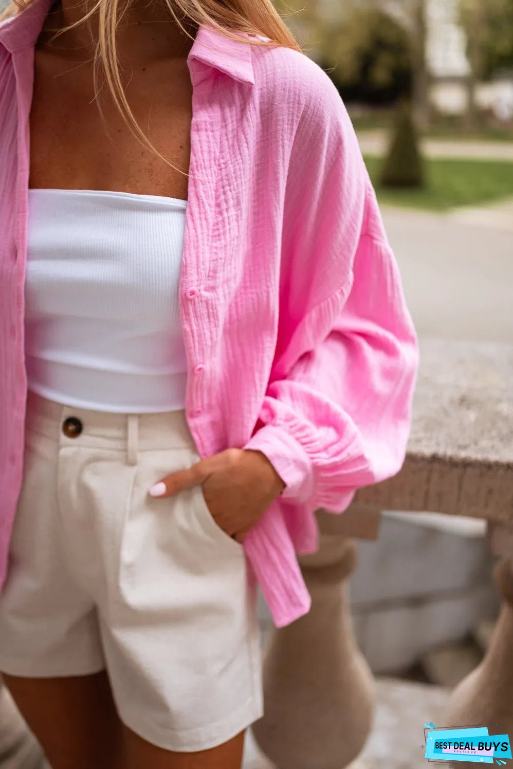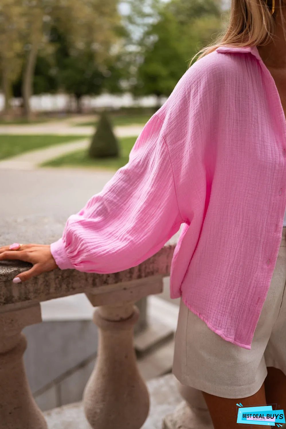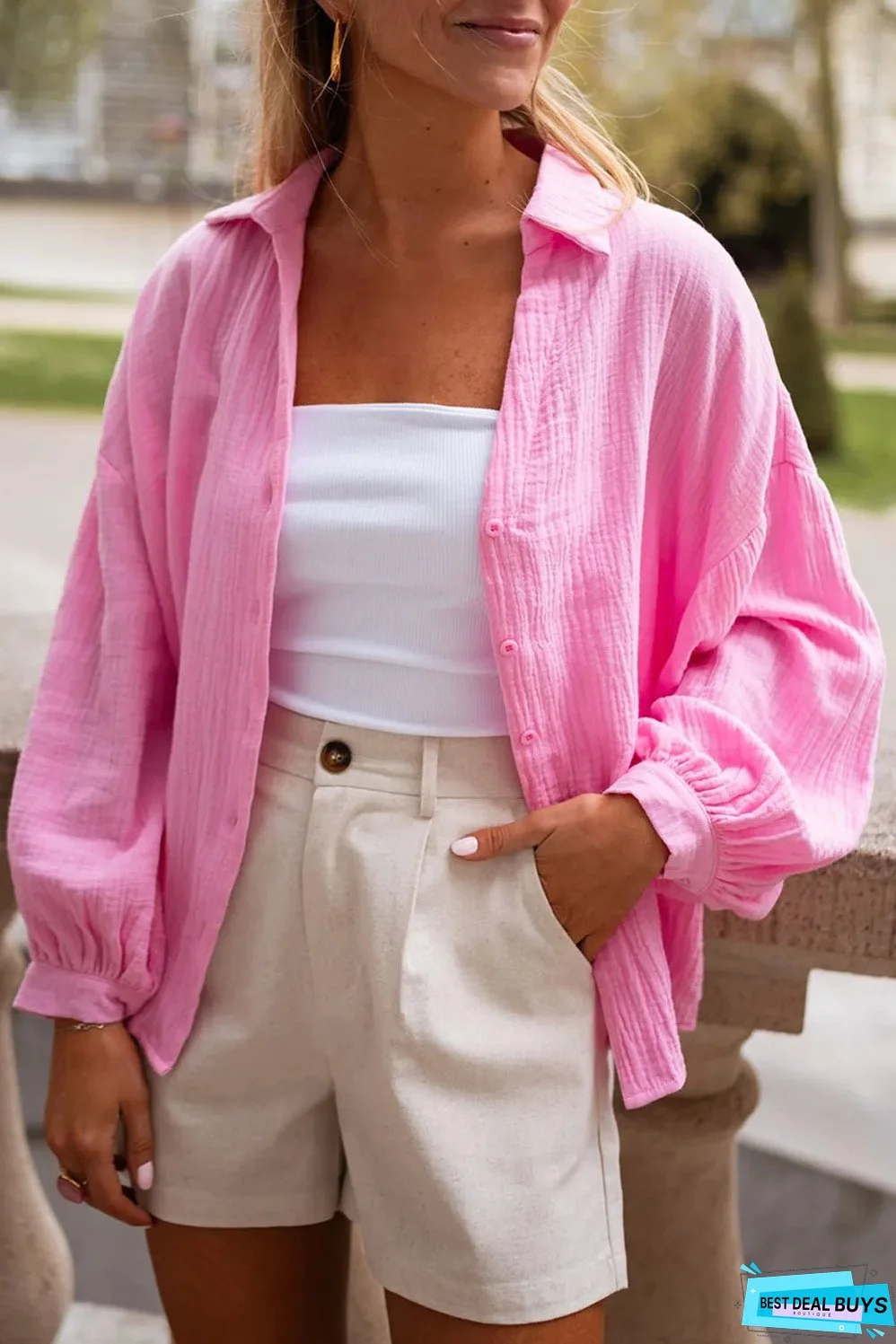 Casual shirt with relaxed drop shoulder design and cute puff sleeves