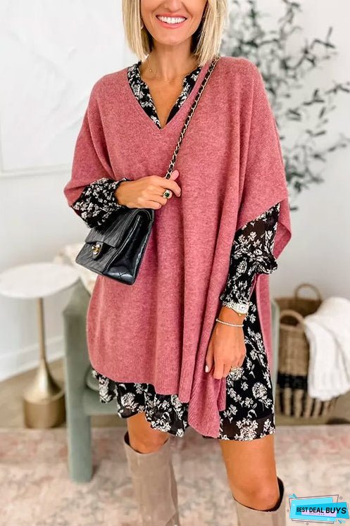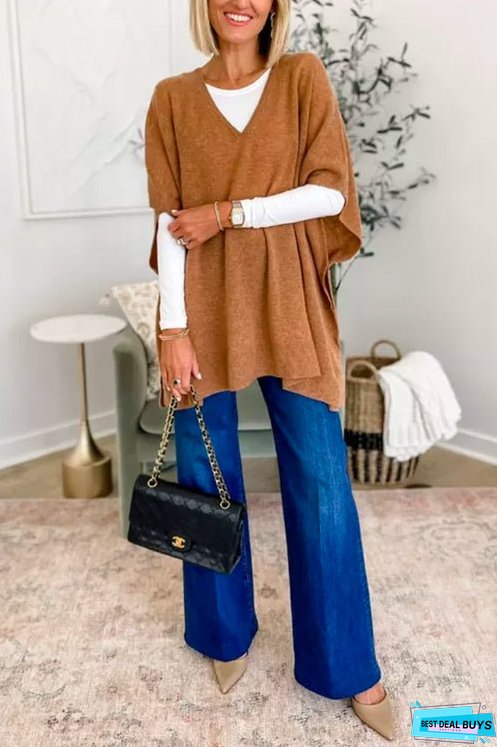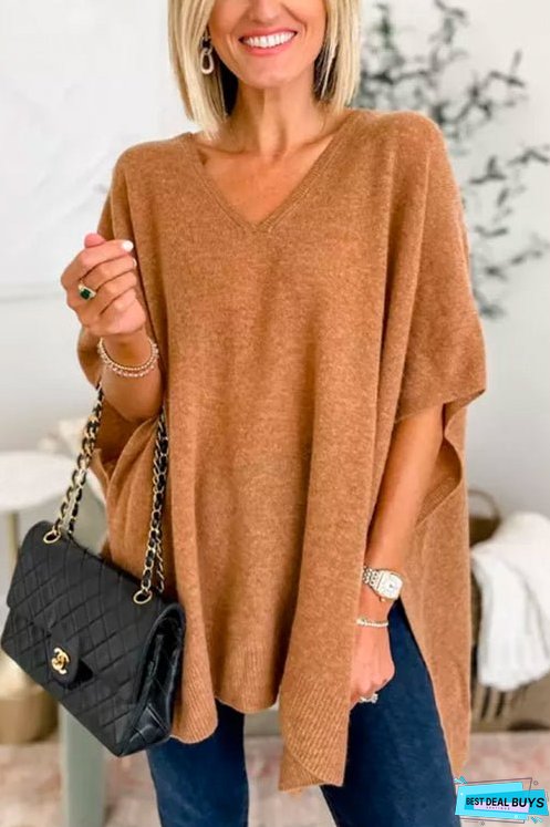 - This V Neck Loose Fit Solid Poncho Sweater is designed for comfort and style. Crafted from lightweight, breathable fabric, this beautiful sweater will keep you feeling comfortable and looking great all season long. Its loose fit gives you freedom of movement and is perfect for layering. Embrace the season in comfort and style!