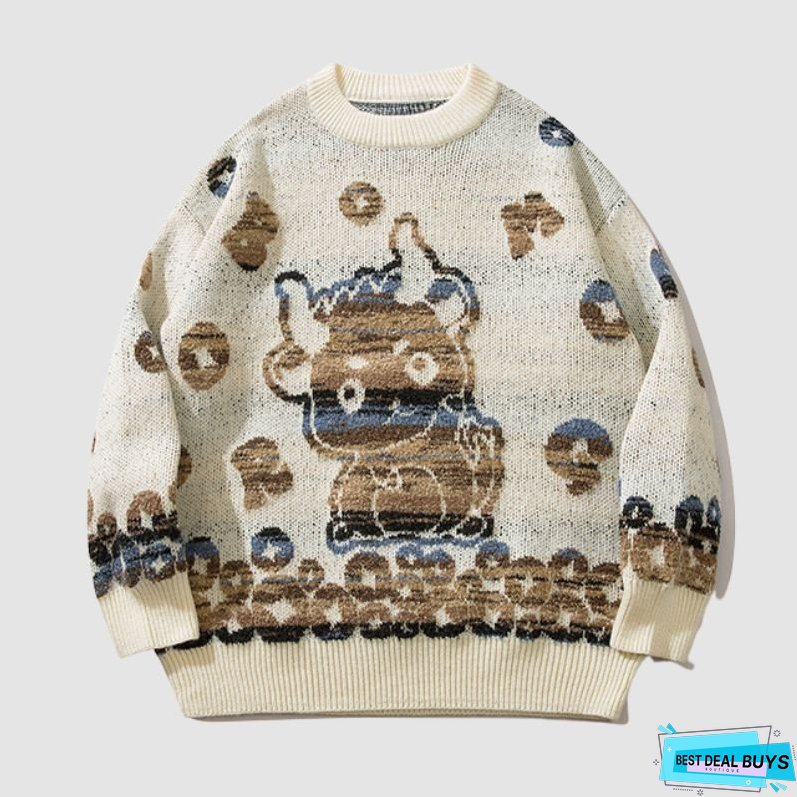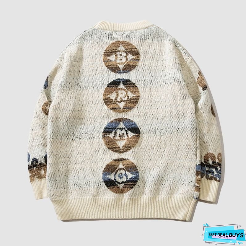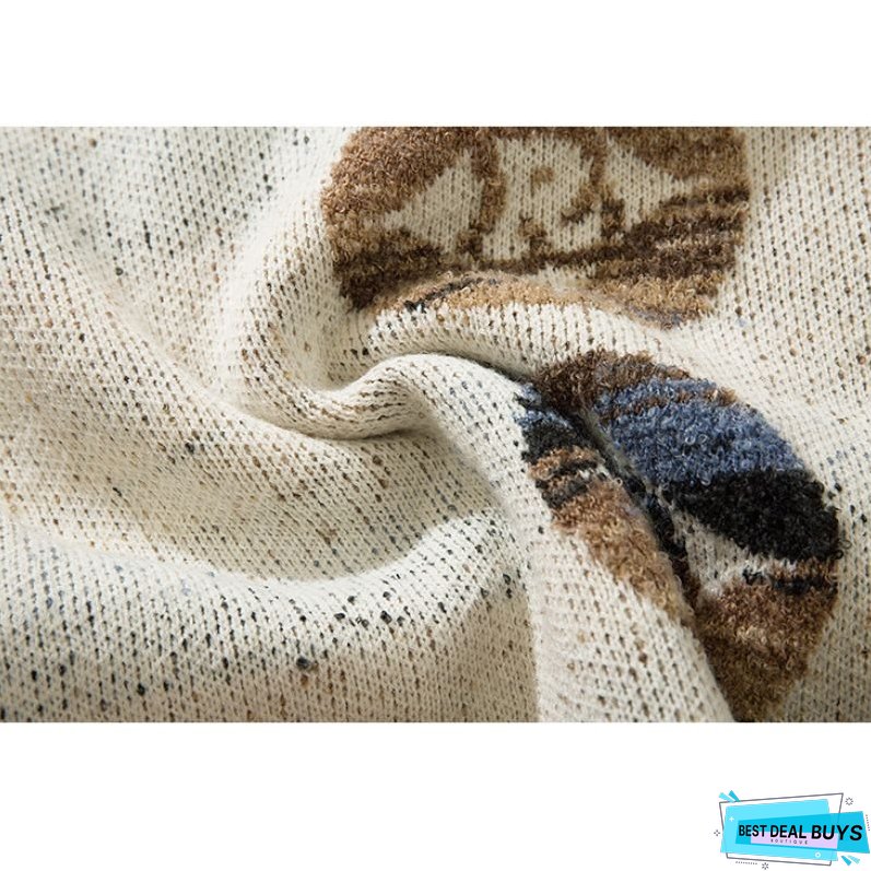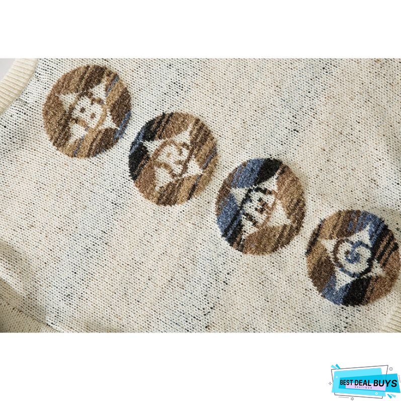 Features: Pullover. round neck. long sleeves. color contrast design. dragon pattern jacquard. loose fit. couple wear.
