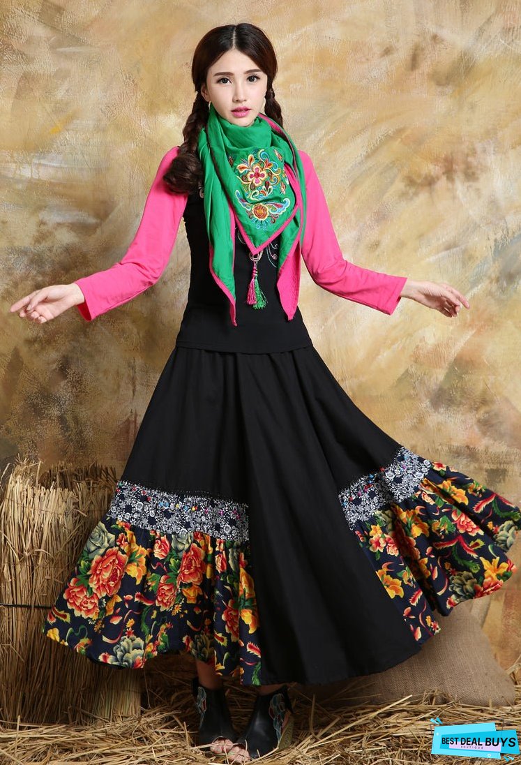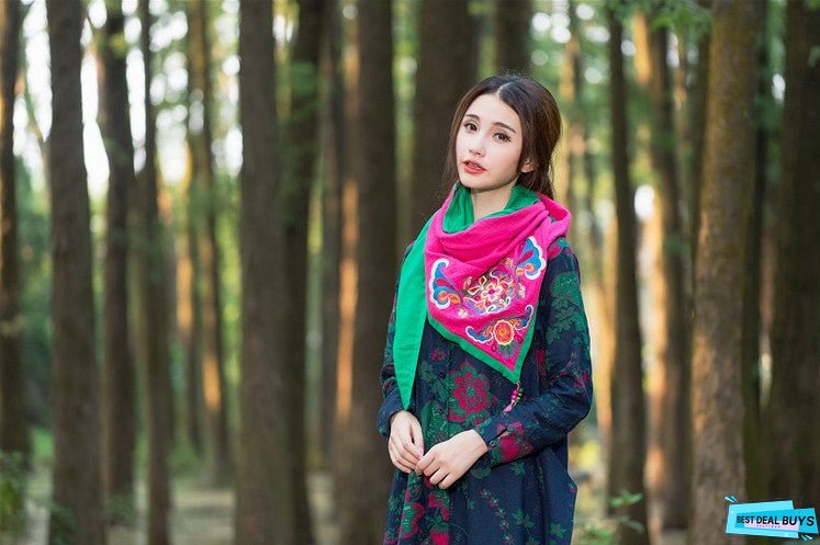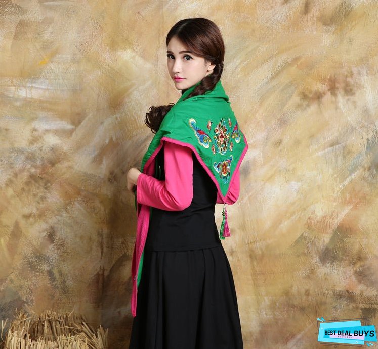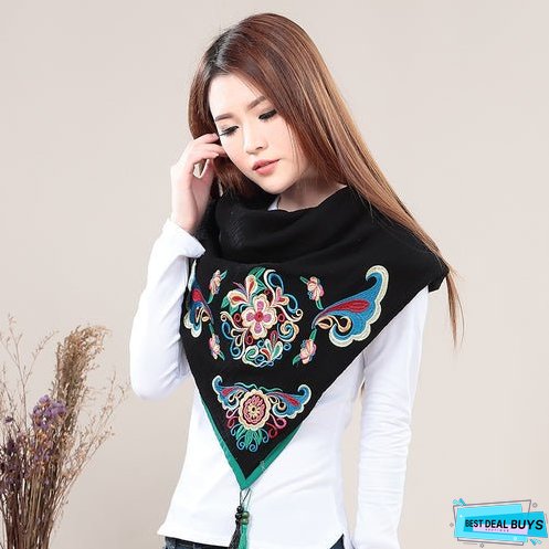 Cotton and linen necklaces in autumn and winter, retro Tibetan style, ethnic style, women's clothing, embroidered flowers, winter Scarf, shawls
