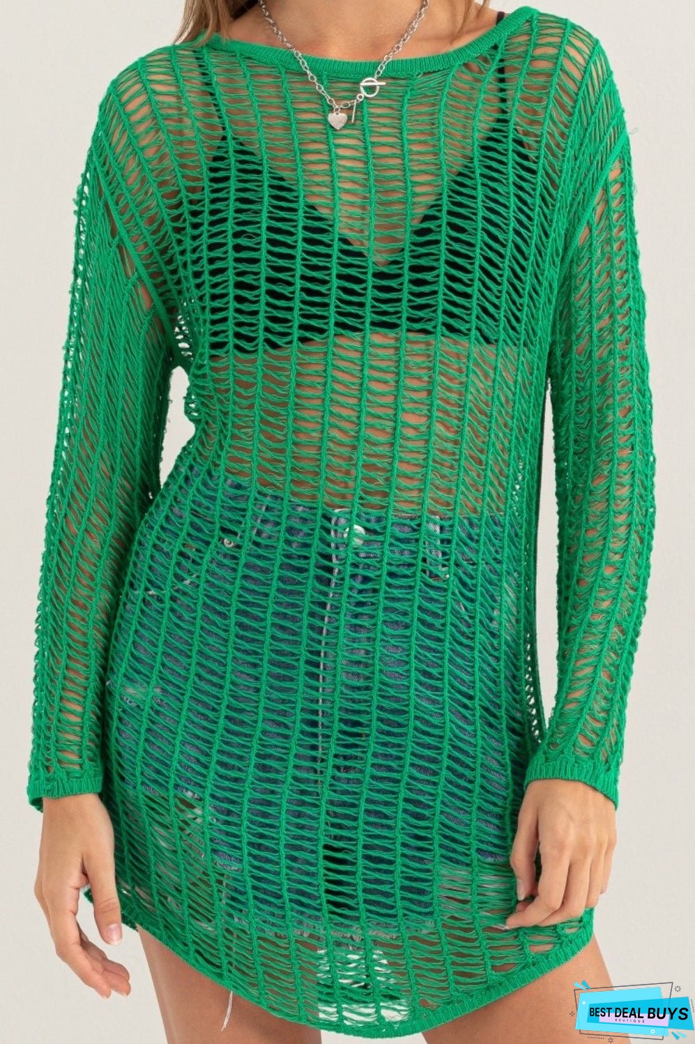 A stylish crochet long sleeve cover-up is perfect for adding a touch of bohemian flair to any outfit. The intricate crochet design and long sleeves provide both style and comfort. It's a versatile piece that can be worn over a swimsuit or paired with jeans for a casual yet chic look. The cover-up is made from soft, breathable materials, making it perfect for warm weather. Its loose fit and adjustable tie closure make it a flattering choice for all body types. Get ready to turn heads with this crochet long sleeve cover-up!