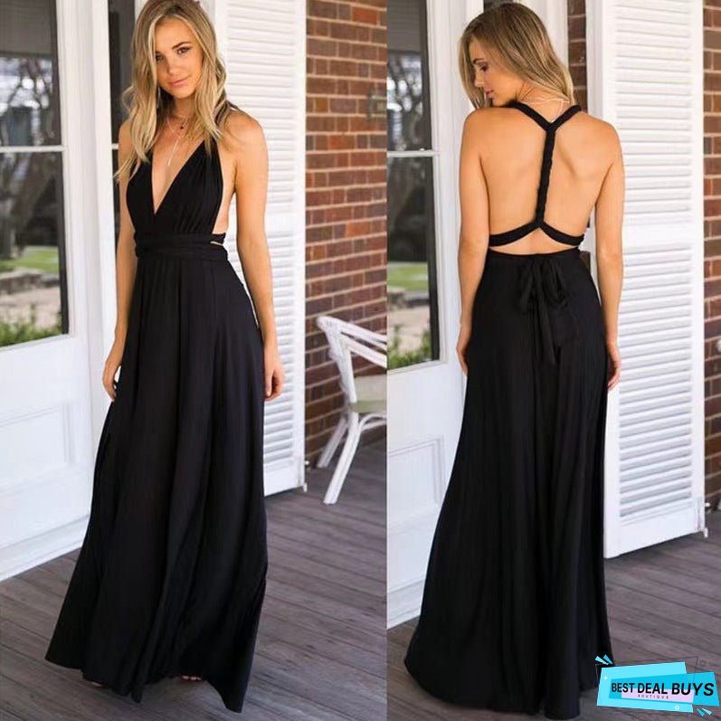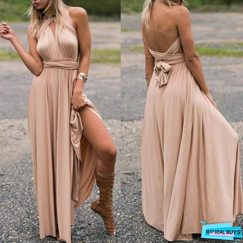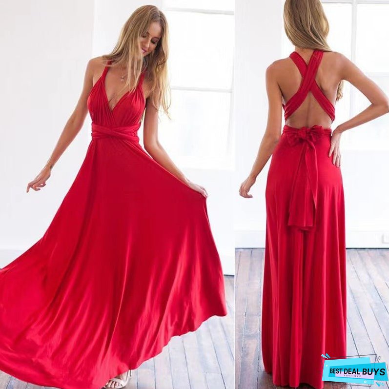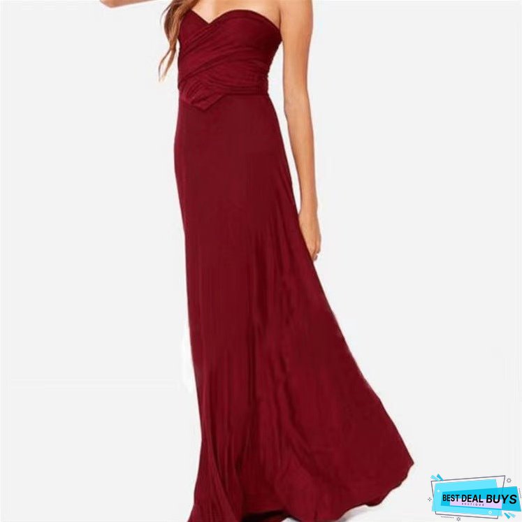 Cross-Border European and American Solid Color Various Wearing Methods Sexy Lace-up Red Dress Long Dress Bridesmaid Dress