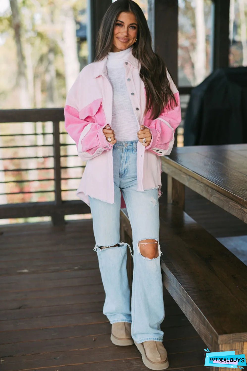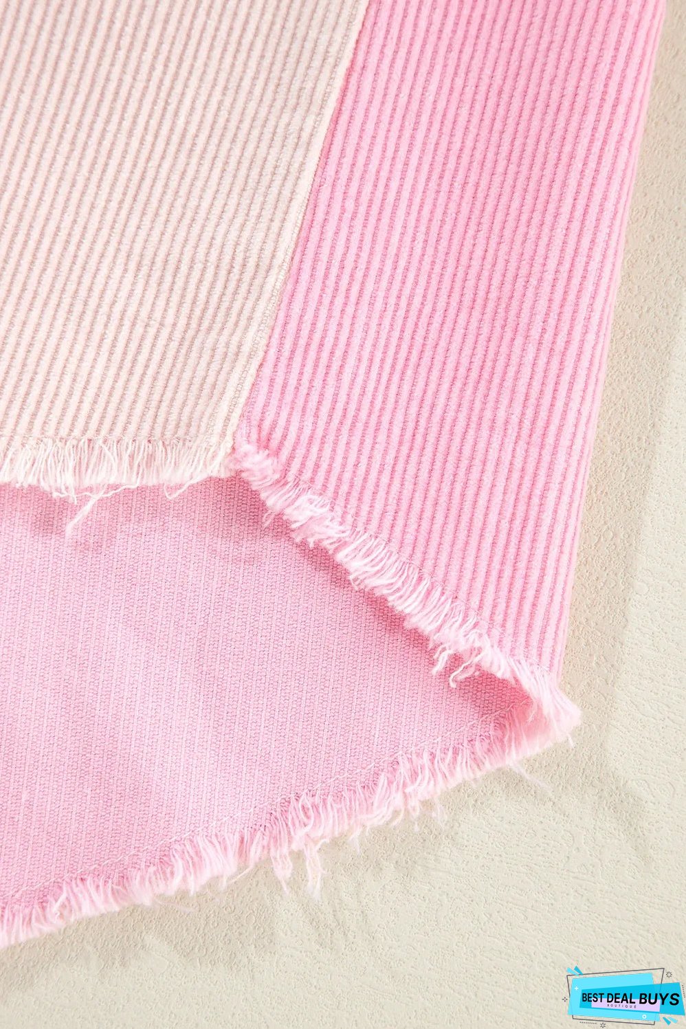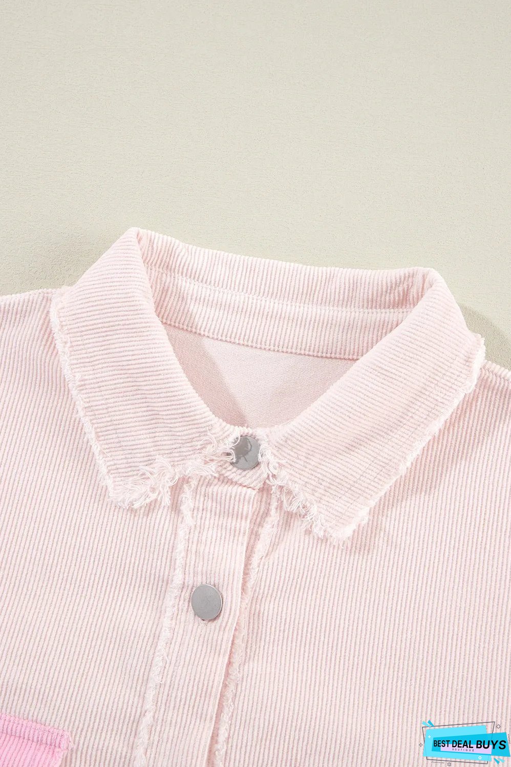 Two-tone color blocking adds a modern twist to this corduroy shacket.