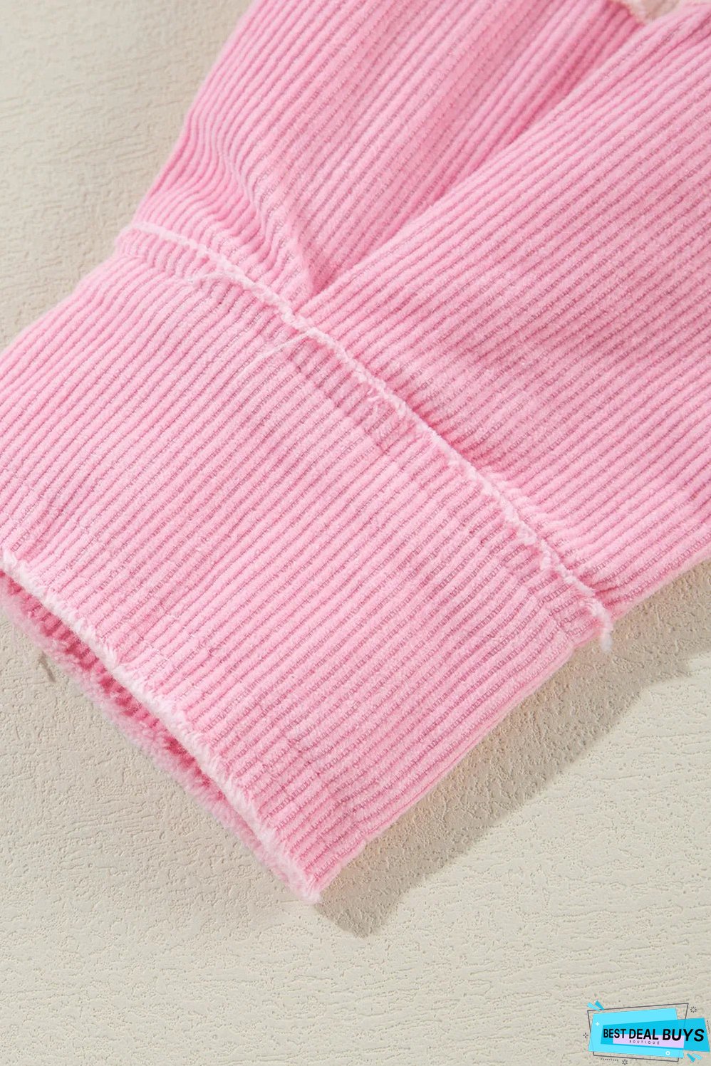 The corduroy fabric offers a soft texture and a warm layer for transitional weather.