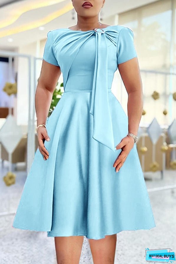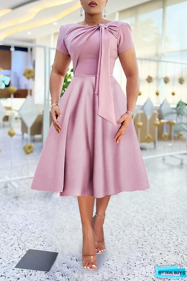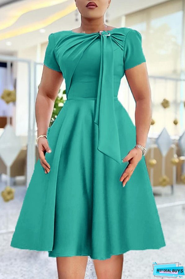 Stay on trend this season in our new elegant, round neck dress. We especially love the solid color fabric and think this piece will be a new favorite in your closet!