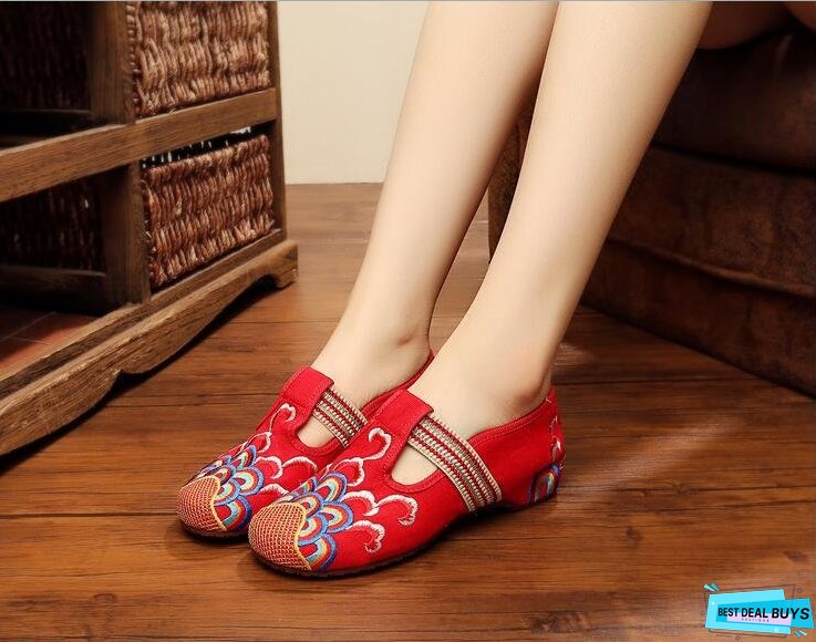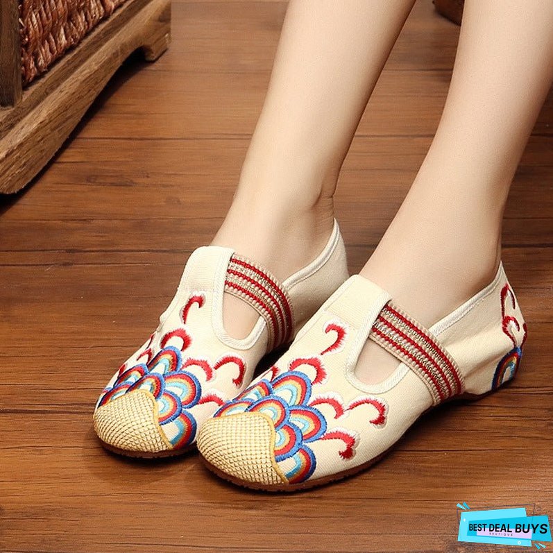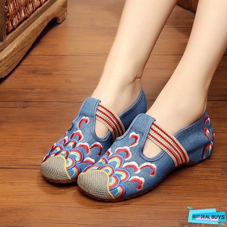 Wave Flower Embroidered Cloth Shoes National Tendon Bottom Spring and Autumn Women's Flat Shoes