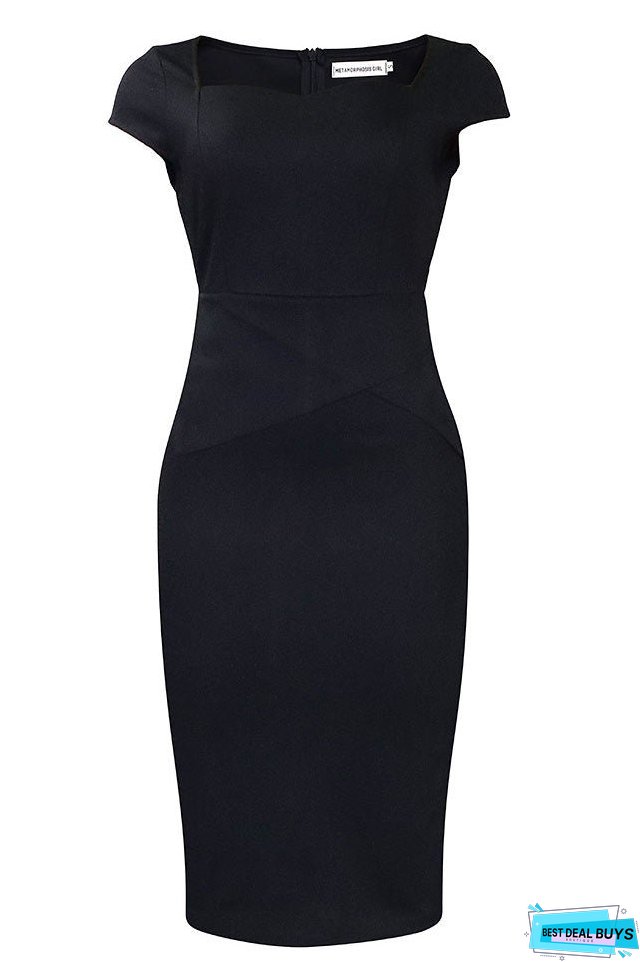 Knee Length Pink Cap Sleeves Midi Dress.