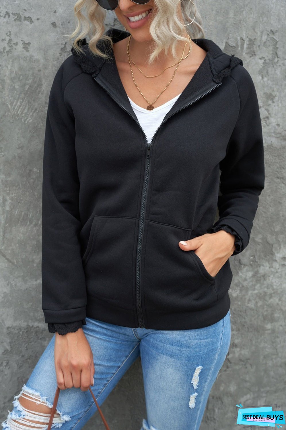 This Lace Trim Zip-Up Hooded Jacket features a sophisticated look with two pockets and a full-length zipper. The quality craftsmanship ensures that you stay warm and comfortable while looking fashionable.