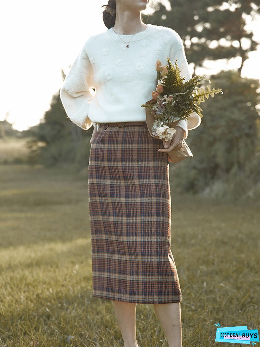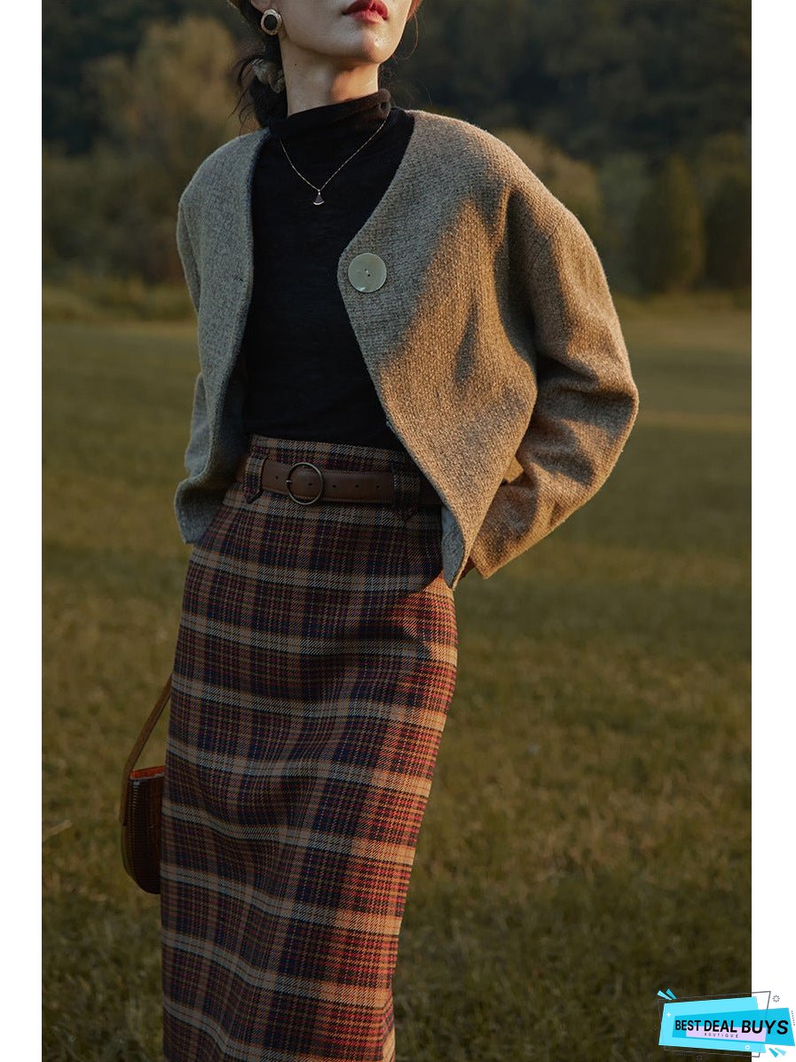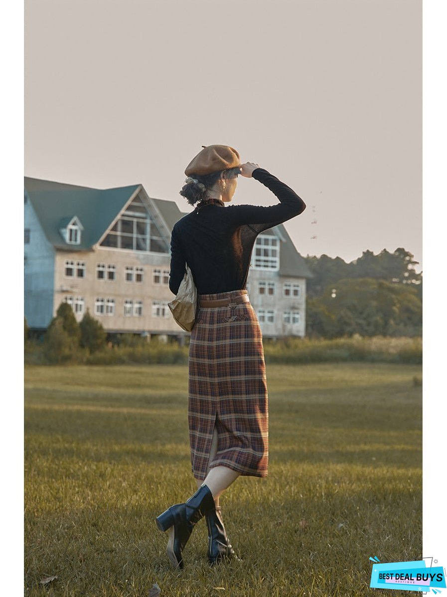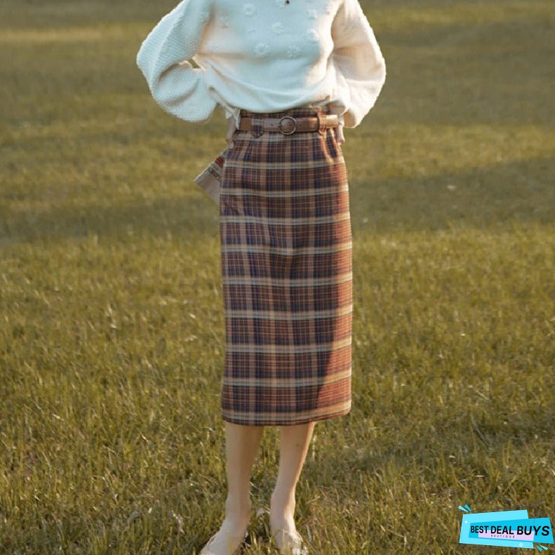 Color: red-brown plaid with belt