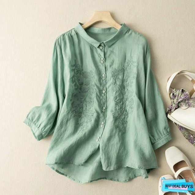 Introducing our Leaf Embroidery Casual Blouse, a charming and versatile addition to your wardrobe. Crafted with delicate leaf embroidery, this blouse adds a touch of nature-inspired elegance to your look. Made from lightweight and breathable fabric, it's perfect for casual outings and everyday wear. Pair it with jeans or shorts for a relaxed yet stylish ensemble, or dress it up with a skirt for a more refined look. Elevate your style with our Leaf Embroidery Casual Blouse and embrace the beauty of nature in your fashion choices.