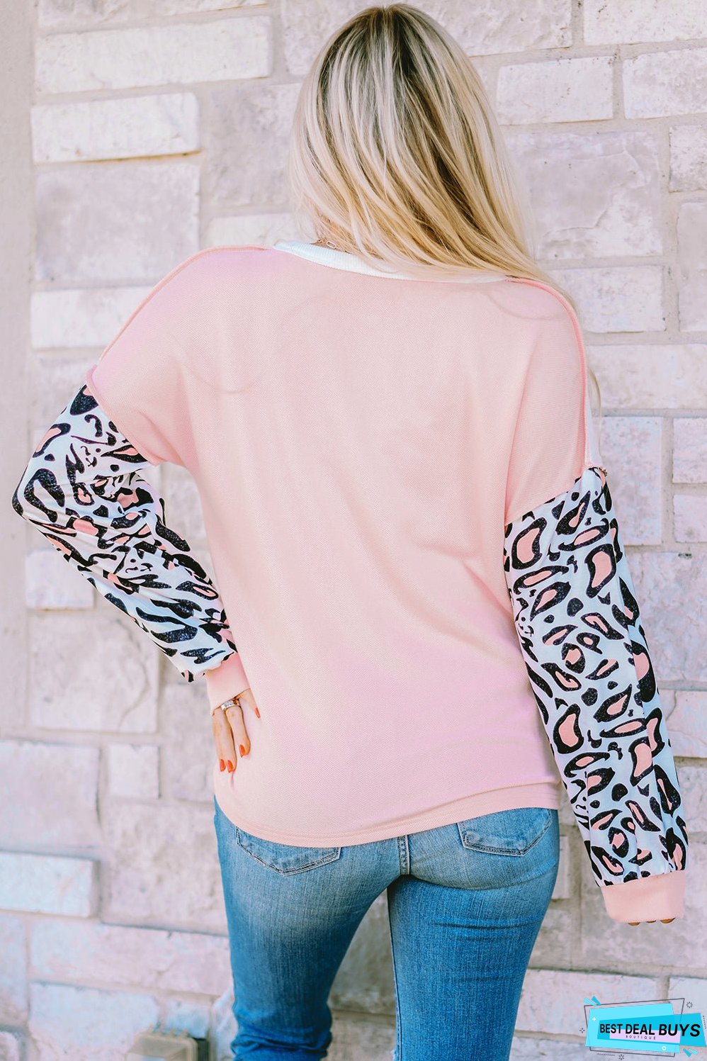 Elevate your wardrobe with this versatile top featuring trendy leopard print sleeves and exposed seam detailing. Perfect for effortless, chic everyday looks.
