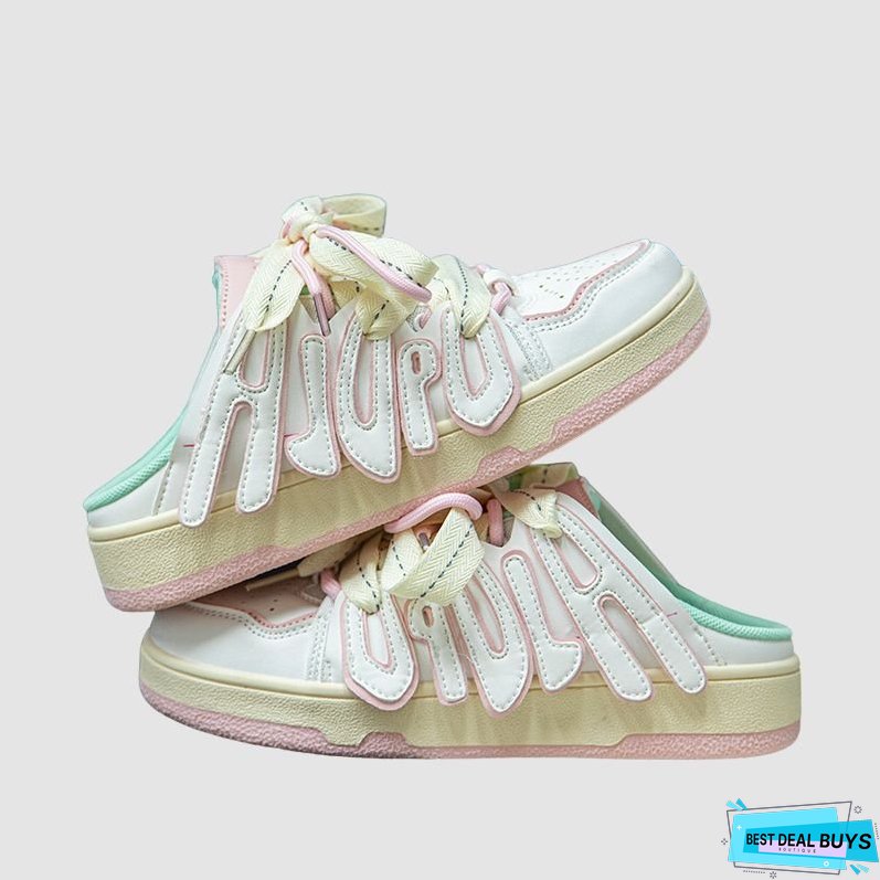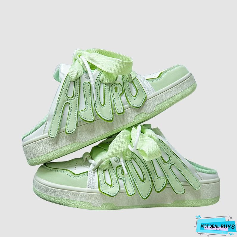 Features: Slippers. color contrast. platform. letter patchwork design. slip-on. unisex.