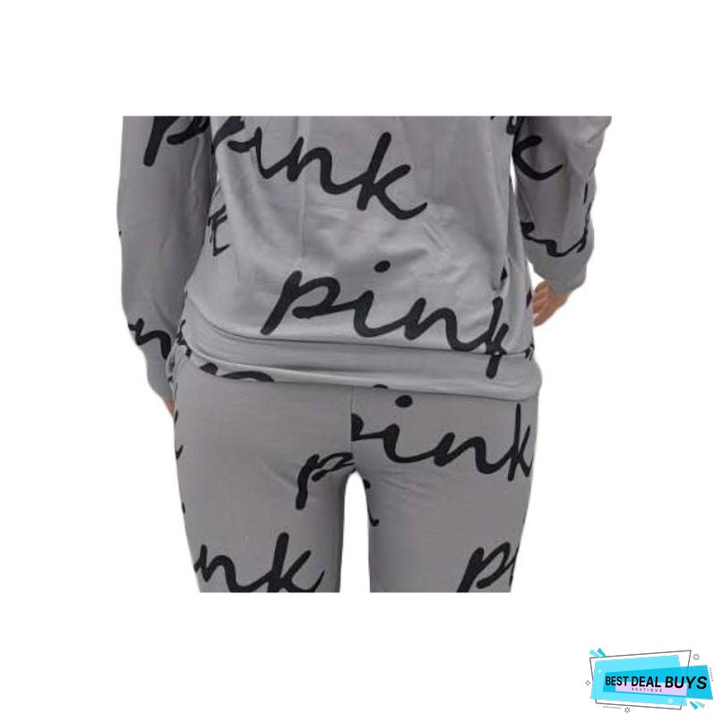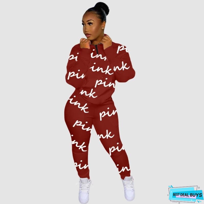 Features: Set. pants. sweatshirts. long pants. long sleeves. zipper. v-neck. drawstring waist. solid color. letter printed. high waist. relaxed fit.