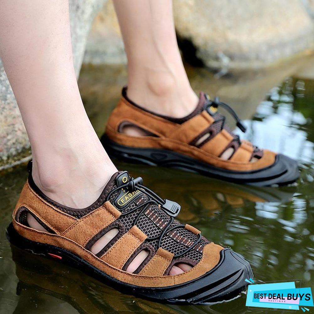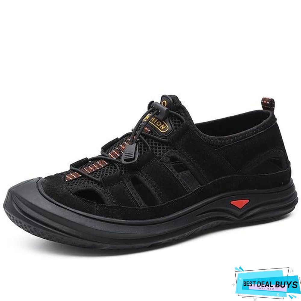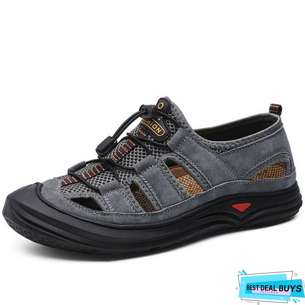 Men Leather Mesh Outdoor Sandals Summer Breathable Beach Shoes