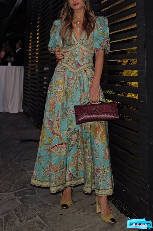 Unleash your unique style with our Our Store V Neck Puff Sleeves Unique Print Swing Maxi Dress. The flattering v-neck and puff sleeves add an elegant touch to this one-of-a-kind printed dress. Make a statement and turn heads wherever you go in this effortless and chic maxi dress.
