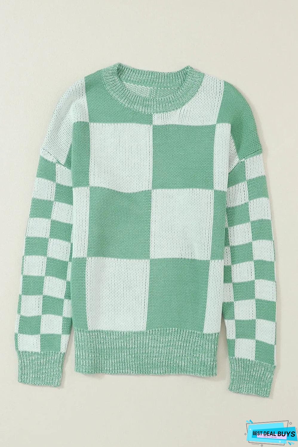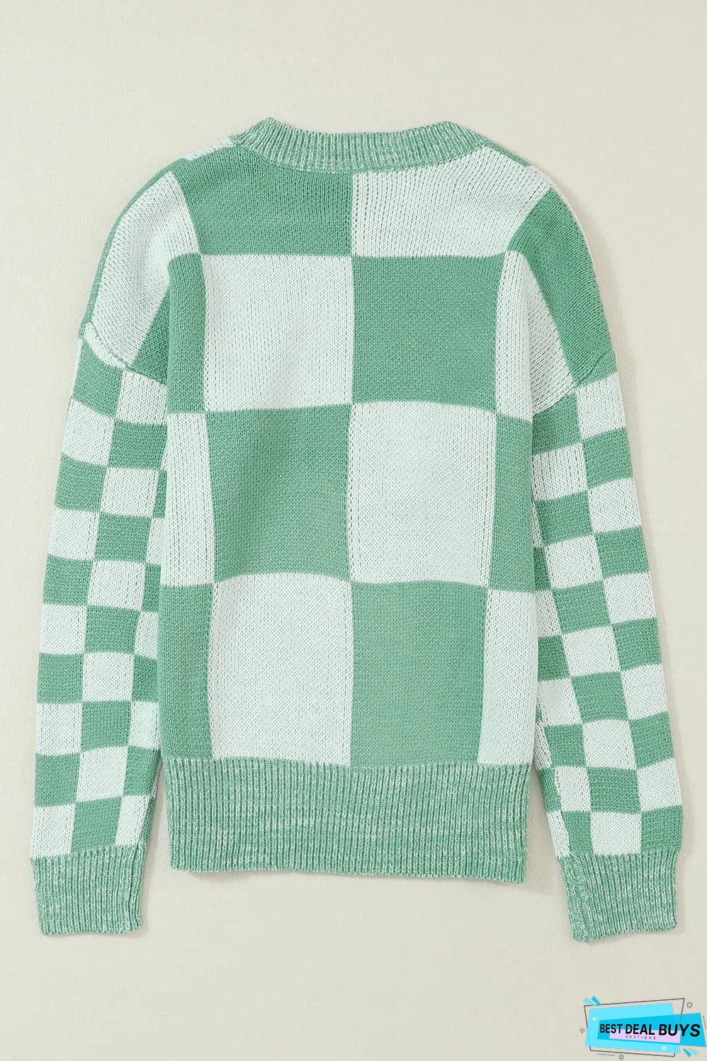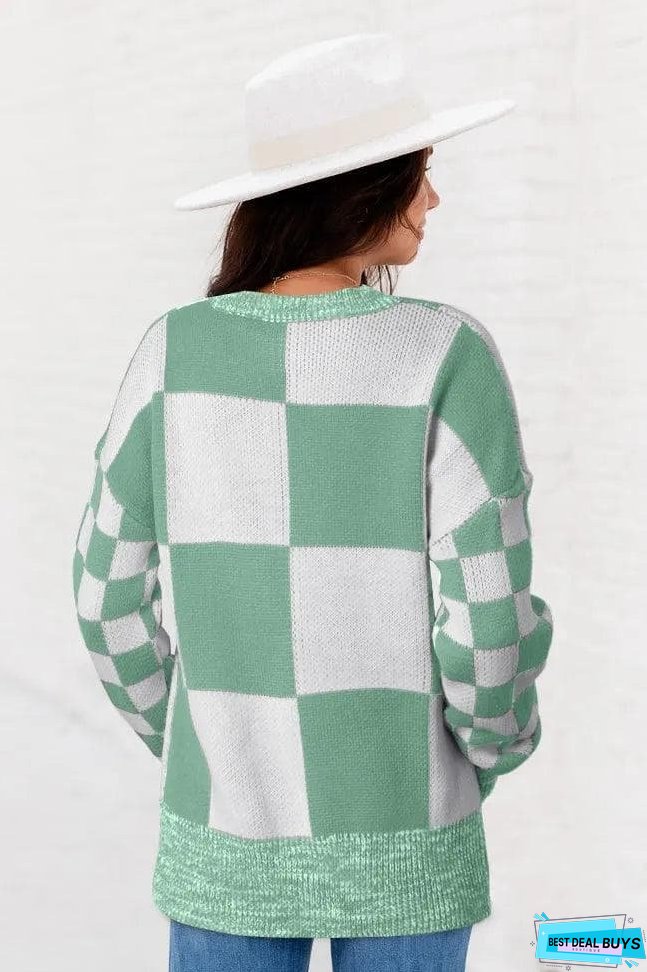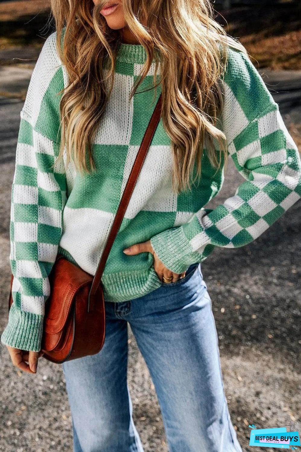 - With its classic checkered print, this sweater is easy to style with a variety of bottoms, such as jeans, skirts, or trousers