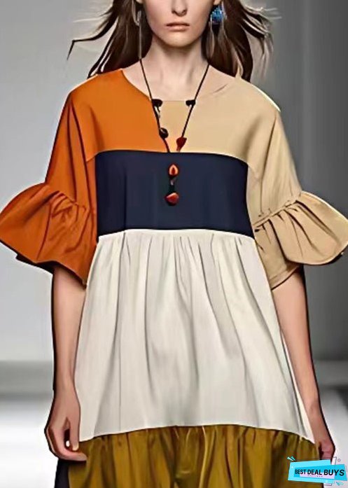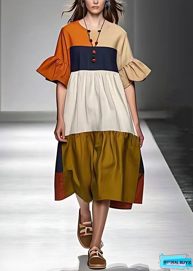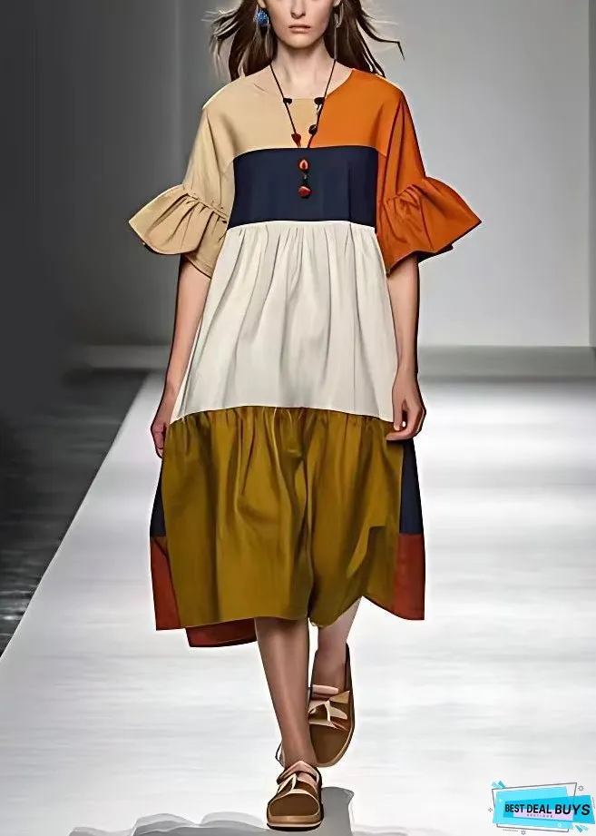New Colorblock Wrinkled Patchwork Cotton Dresses Half Sleeve
