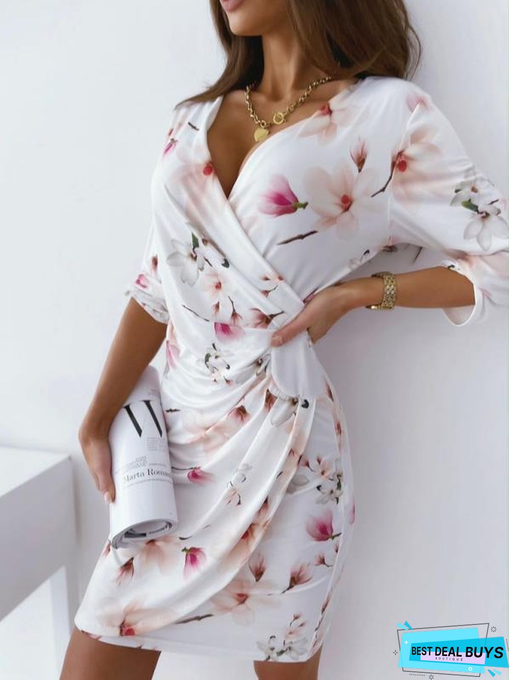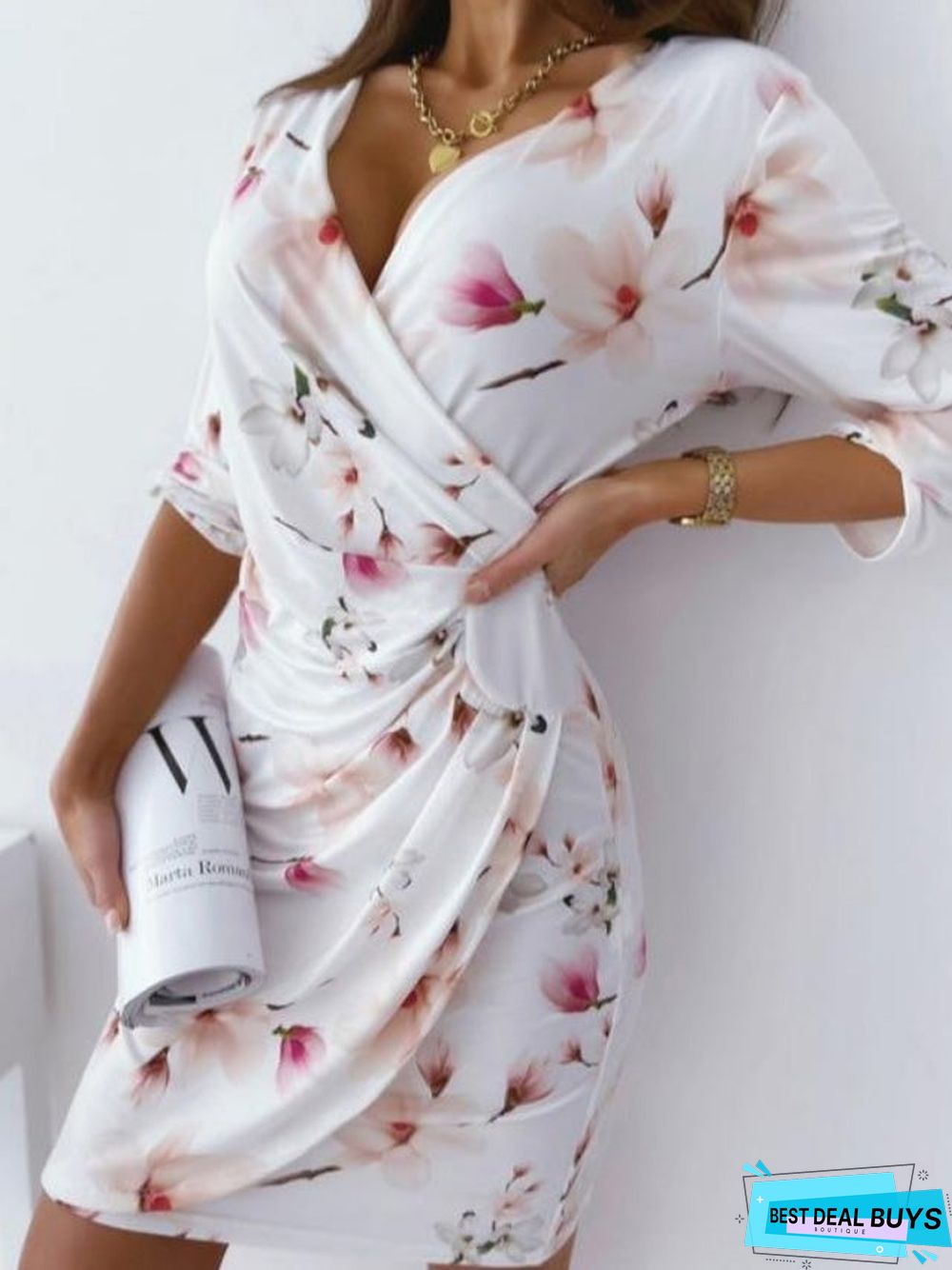 New Printed Slim V-Neck Dress For Summer Wear White Dresses