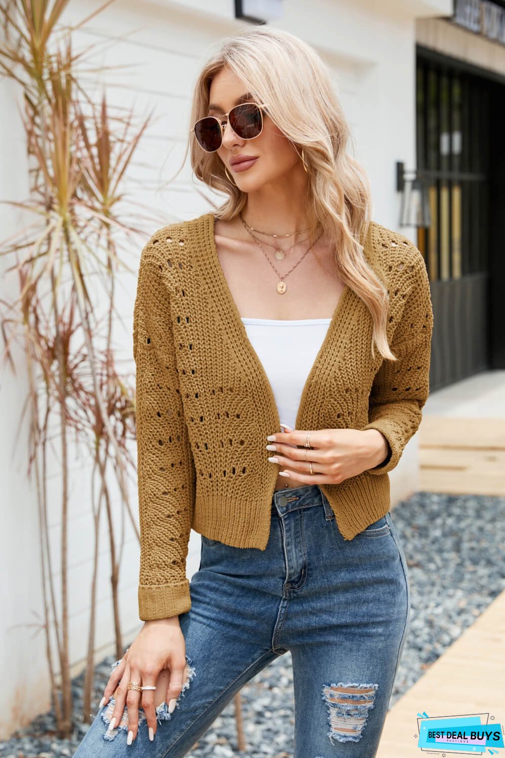 Wrap yourself in style with our Open Front Cuffed Cropped Cardigan! This versatile piece features an open front design and cuffed sleeves for a chic and effortless look. Perfect for layering or dressing up any outfit. it's a must-have in your wardrobe. Stay cozy and stylish with this cardigan!