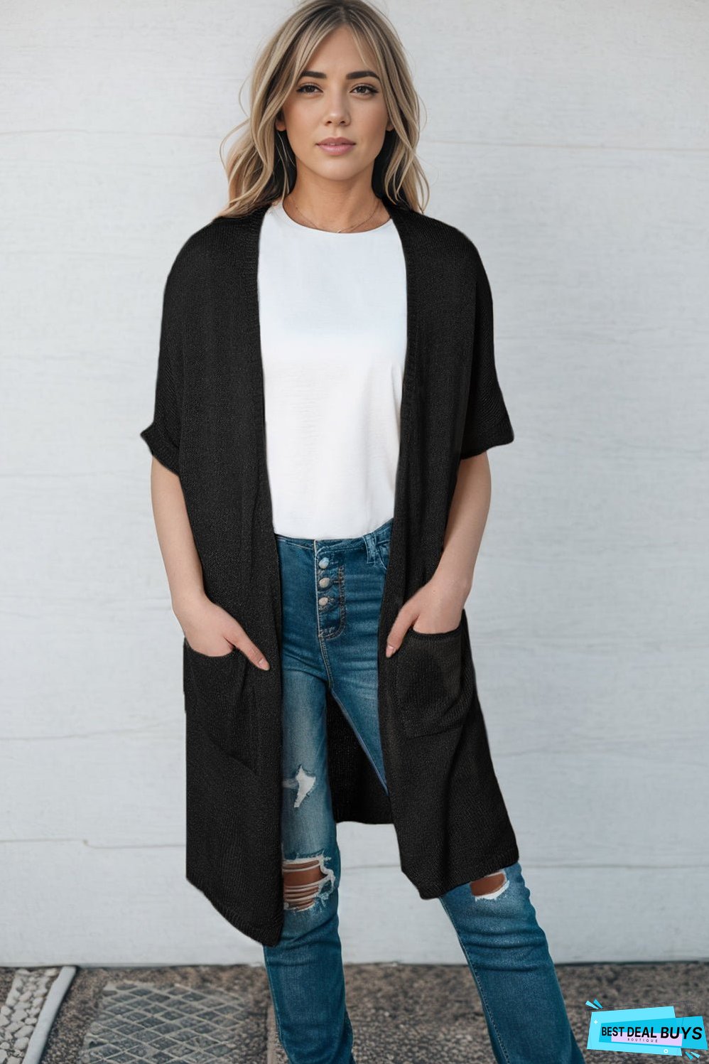 L: bust 44.9 in, sleeve length 14.3 in, length 34.3 in