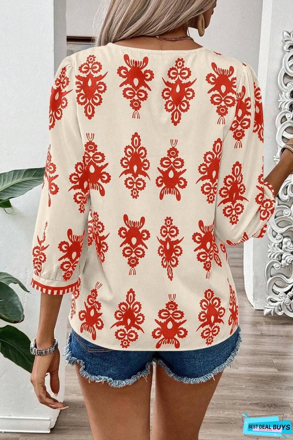 Its 3/4 sleeves and a V-neck create a flattering style.
