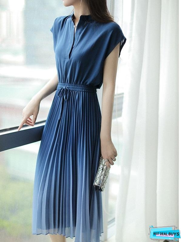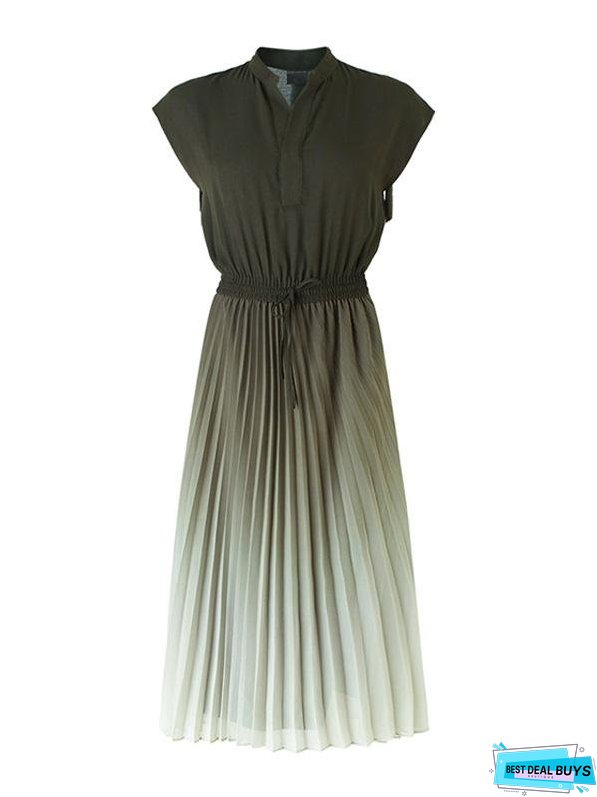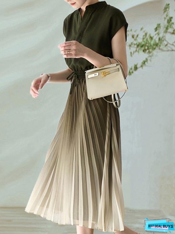 Make a Statement: Stand out with our Pleated Gradient Tie Elastic Waist Dress, designed to capture attention with its graceful silhouette and charming color gradient.
