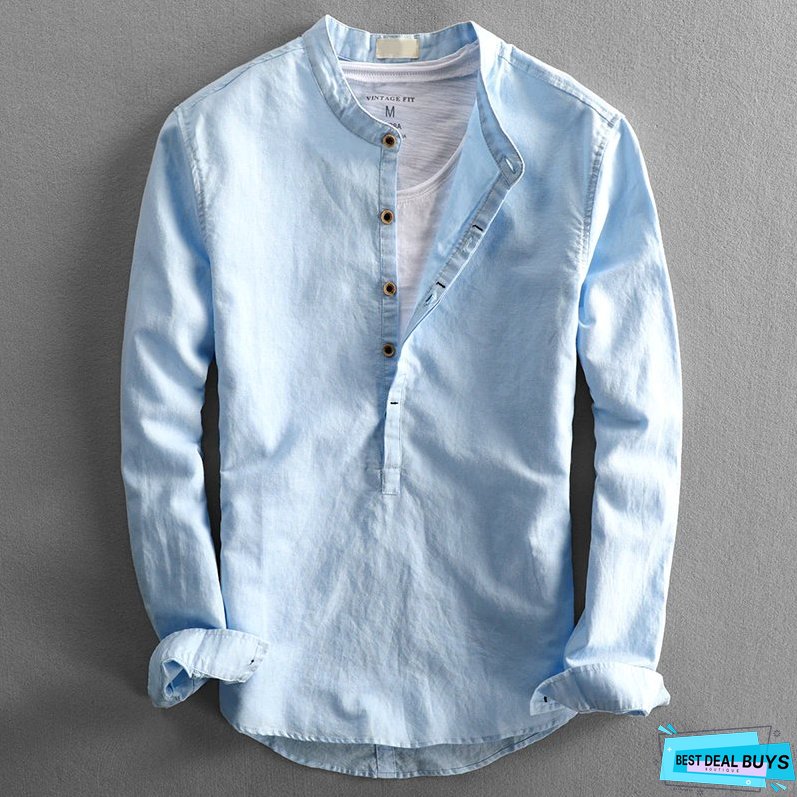 Versatile, stylish, and incredibly comfortable - the Remy-Doir Homme Linen Shirt has it all. Crafted from premium linen, it features long sleeves, a slim cut, and a minimalistic collar to pull off a great fit. Roll up your sleeves for an extra relaxed look.