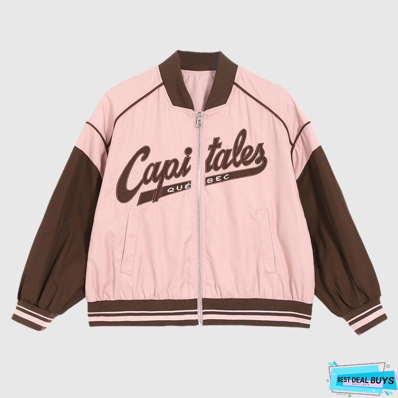 Features: Jacket. lapel. long sleeve. Letter splicing design. no stretchy. relaxed fit. unisex. soft and breathable. couple outfits.