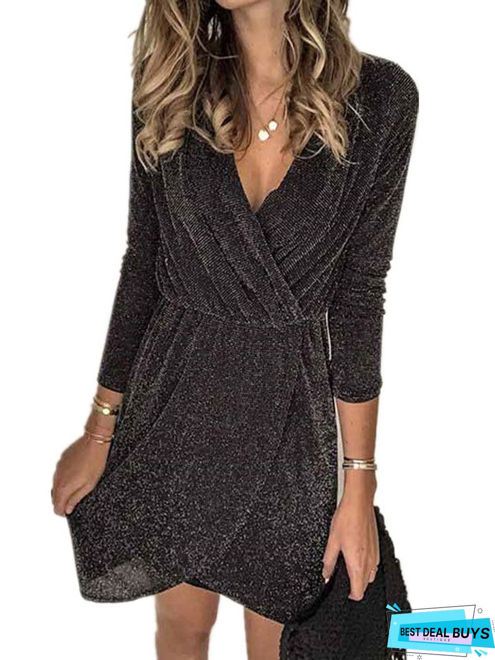 Spring and Summer New Women's V Collar Irregular Sequin Evening Dress Black Dresses