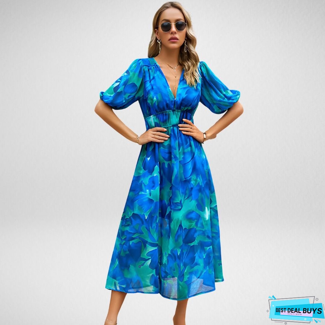 Step into a realm of refined sophistication with a dress that blends classic style. Designed with elegant puff sleeves, this dress discreetly conceals arm imperfections while providing supreme comfort and a flattering fit. Perfect for any occasion, it ensures you exude grace and confidence from dawn to dusk.