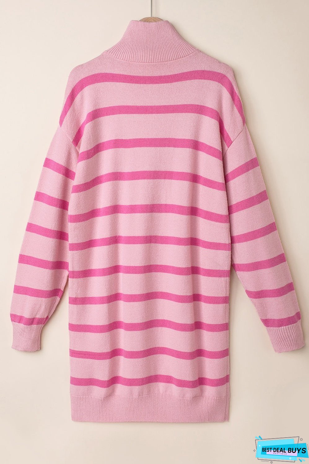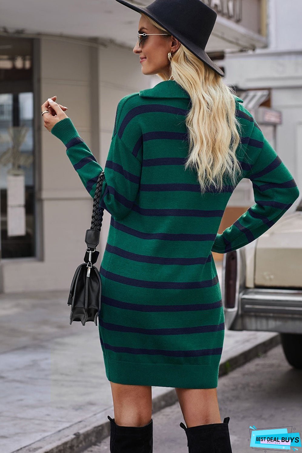 This women's sweater dress features a timeless striped design and a quarter-zip collar. making it a stylish and versatile addition to any wardrobe. Crafted from high-quality materials. it offers both comfort and durability. Elevate your look with this essential piece.