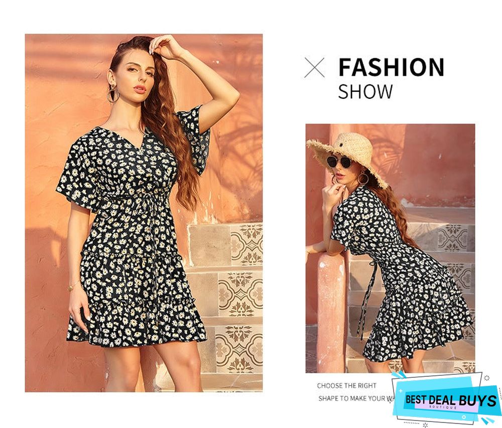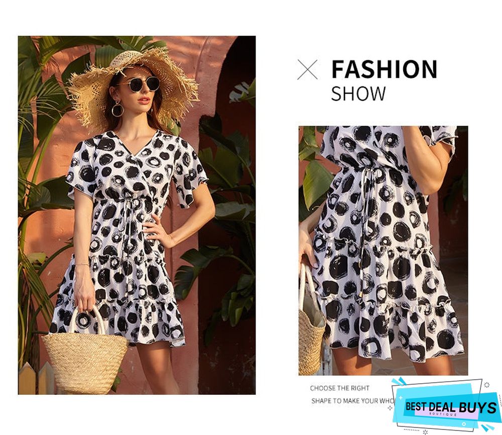 Women's Chiffon V-Neck Lace Up Dress Casual