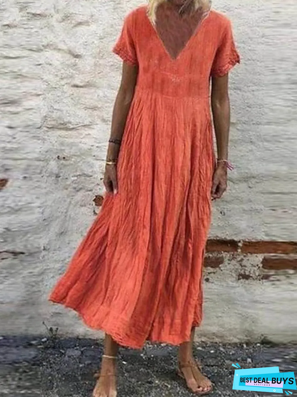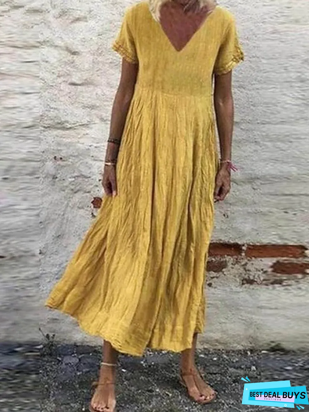 Women's Plus Size A-Line Dress Midi Dress - Short Sleeves Summer V Neck Casual White Black Yellow Orange Green White Dresses Linen