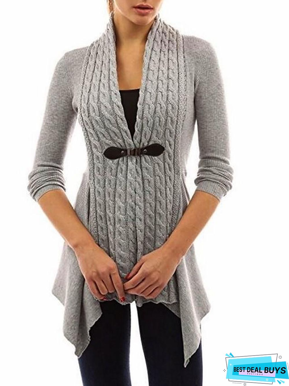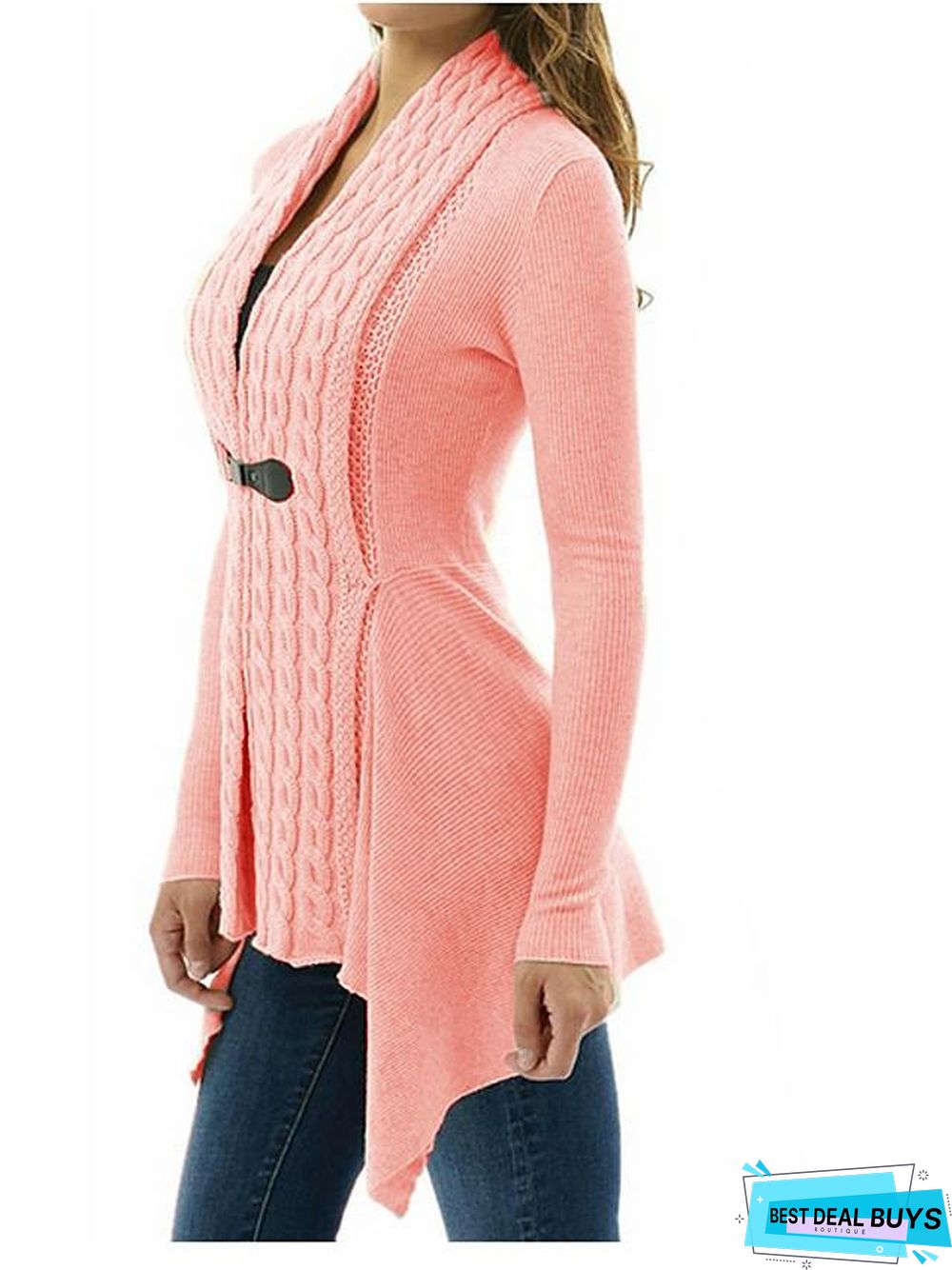 Women's Solid Colored Cardigan Long Sleeve Sweater Cardigans V Neck Black Purple Blushing Pink